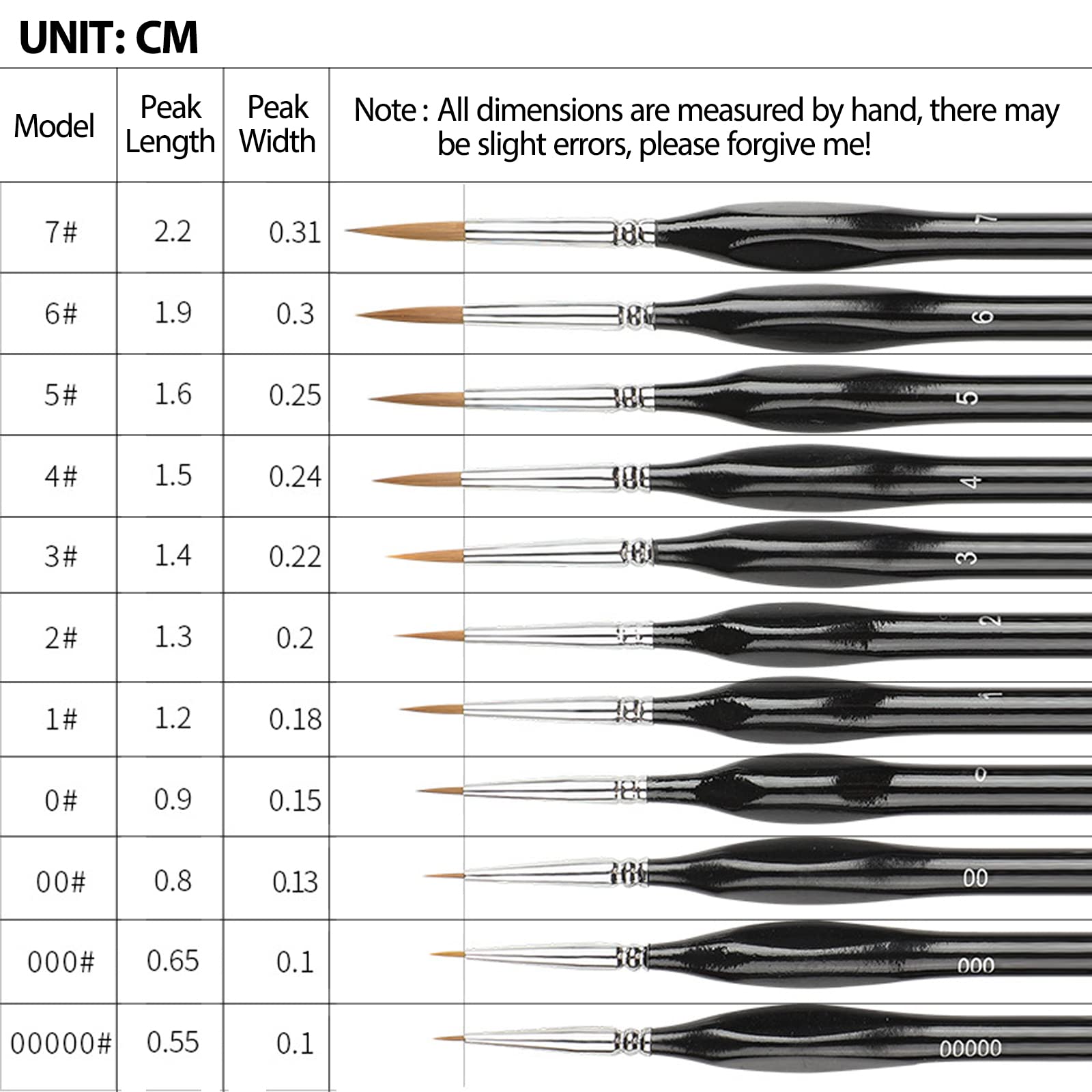 11 pcs Detailing Brush Set Nylon Miniature Paint Brush Set