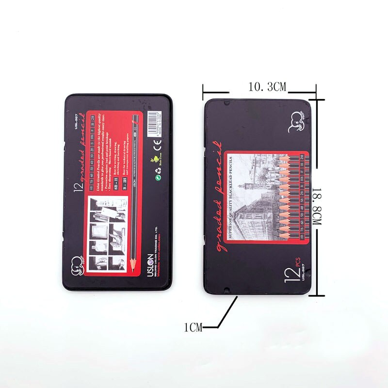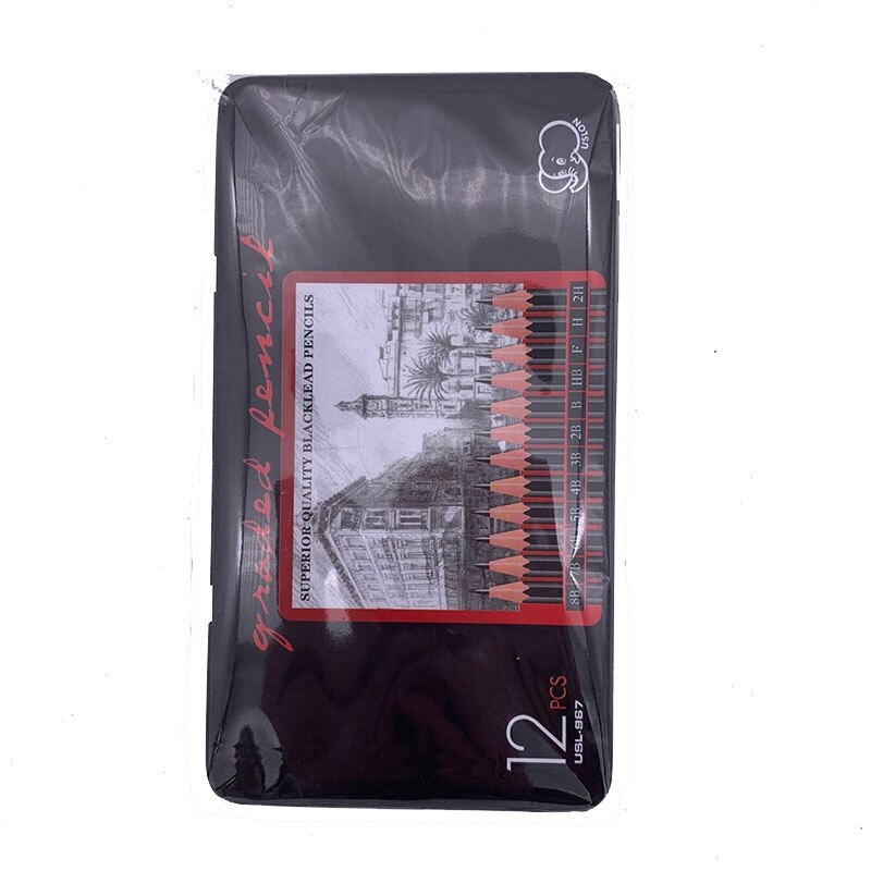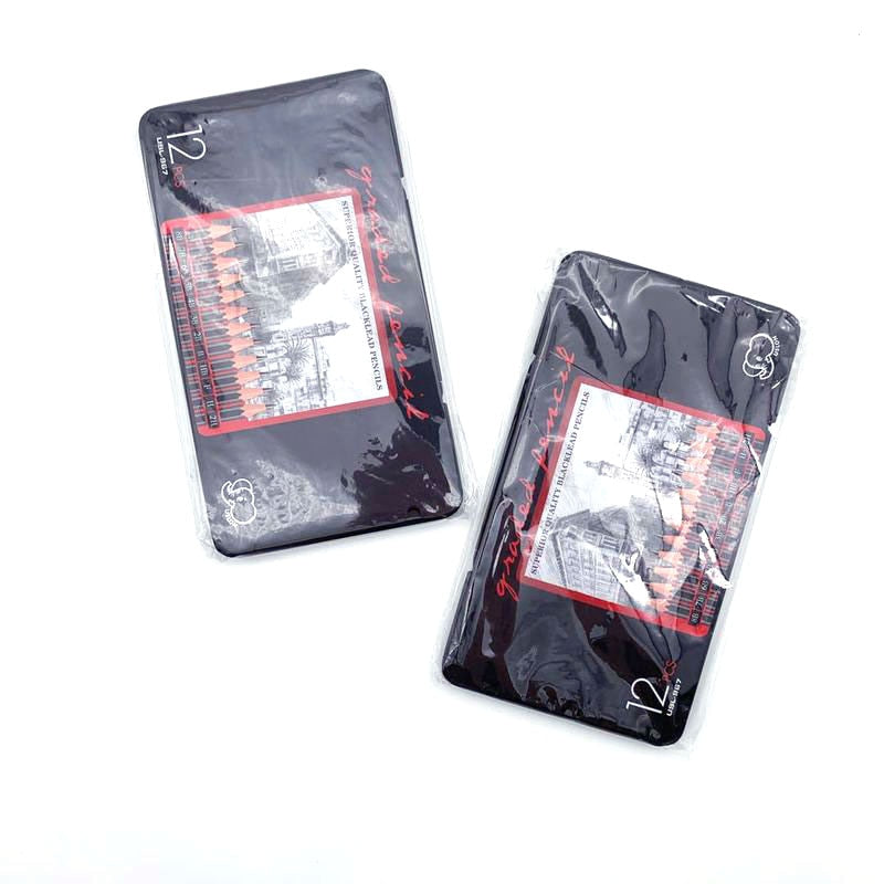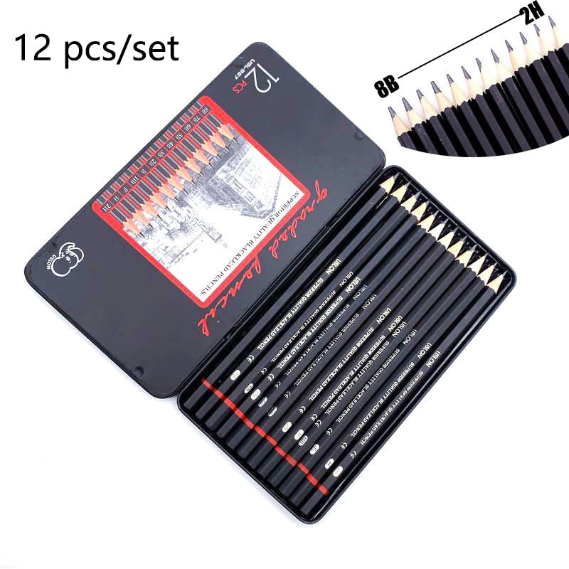 12 Pcs/Set 2H-8B Wooden Lead Pencils Set With Iron Box