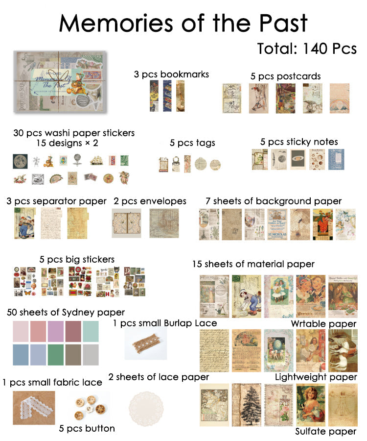 If you like the mix and match of different materials. this vintage junk journal set has everything you want!A collection of140 vintage stickers and stock papers. perfect for journals. scrapbooking. collages. or vintage-themed art projects!