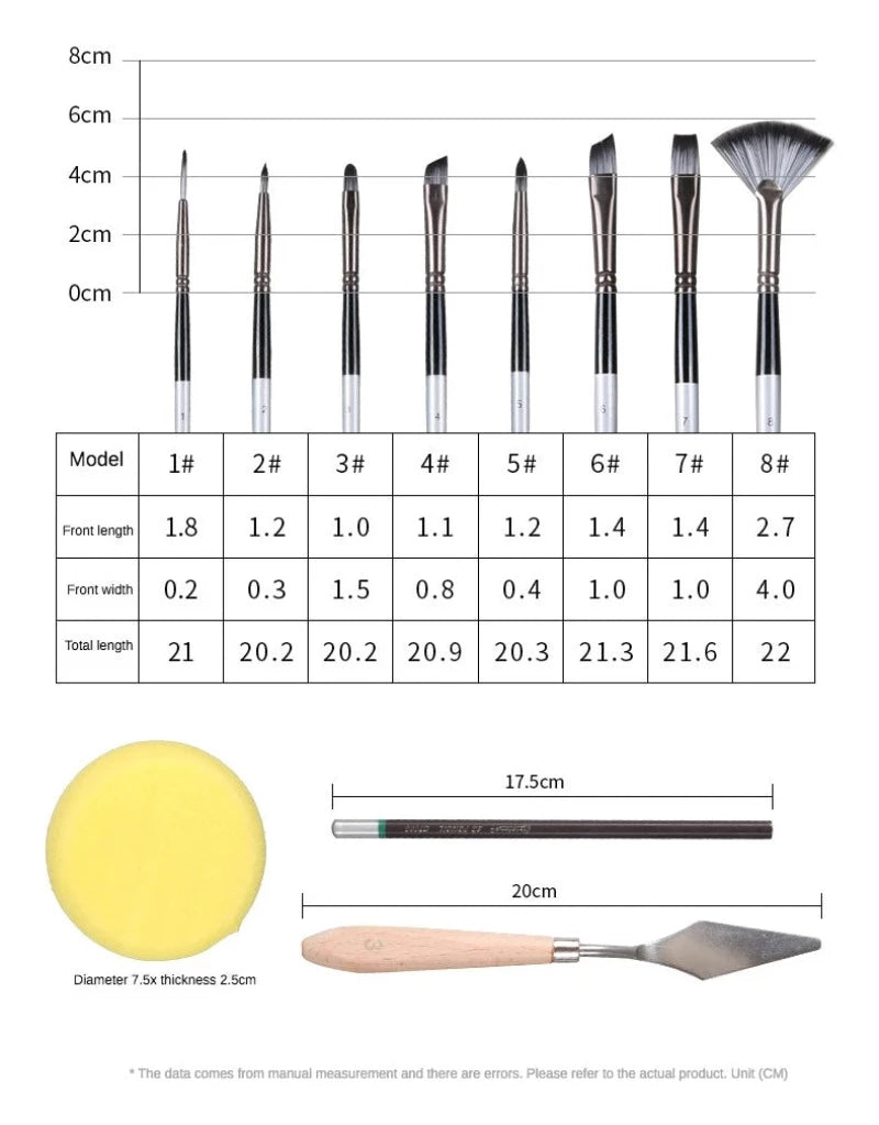 19 pcs Wooden Nylon Hair Multihead Watercolor Pens Oil Painting Knife Cloth Sponge Acrylic Brush Gifts Art Supplies For Painting