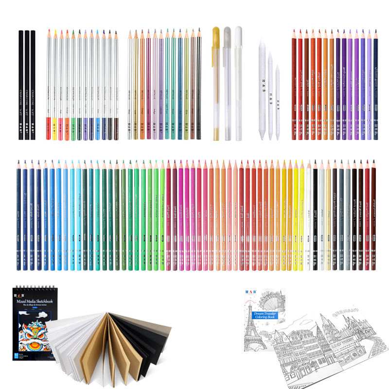 Oil-Based Coloured Pencil Sketching Set 142 Pieces Drawing Set Complete Set of Art Student Supplies