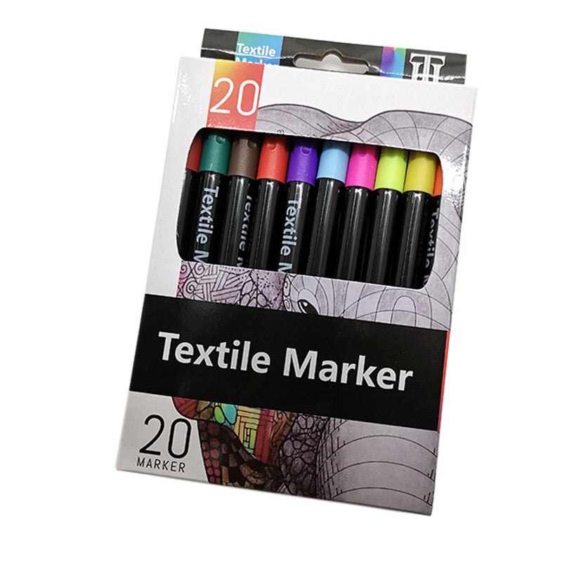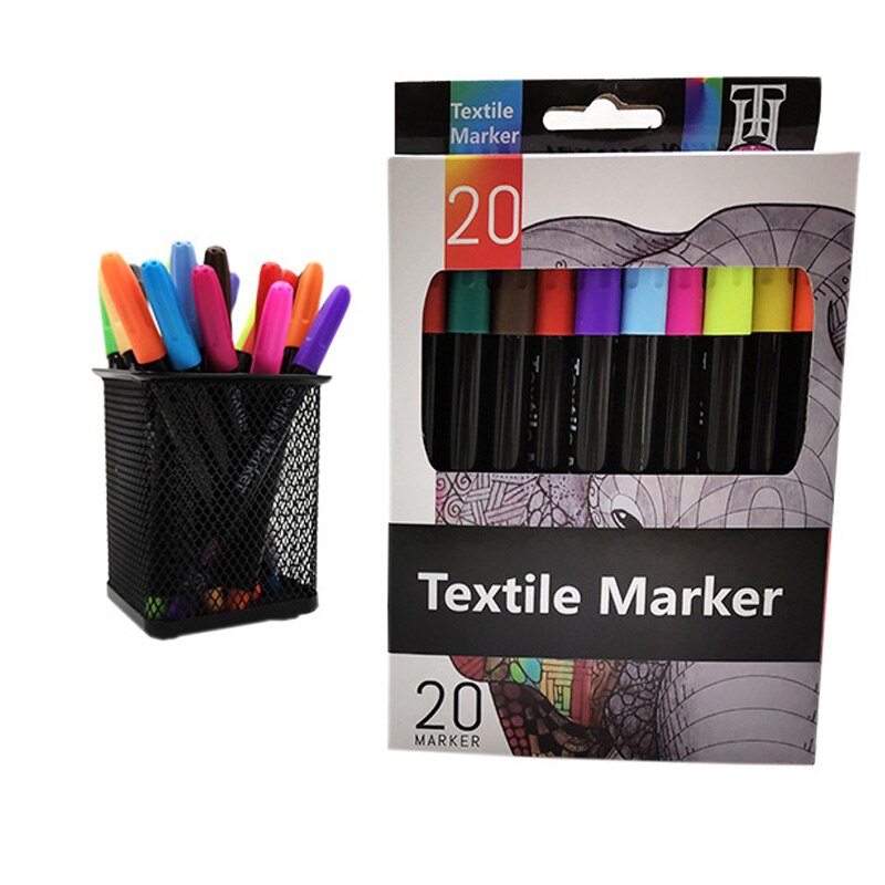 20 Colors Fabric Markers Pens Set Non Toxic Indelible Fine Point Textile Marker Pen Set