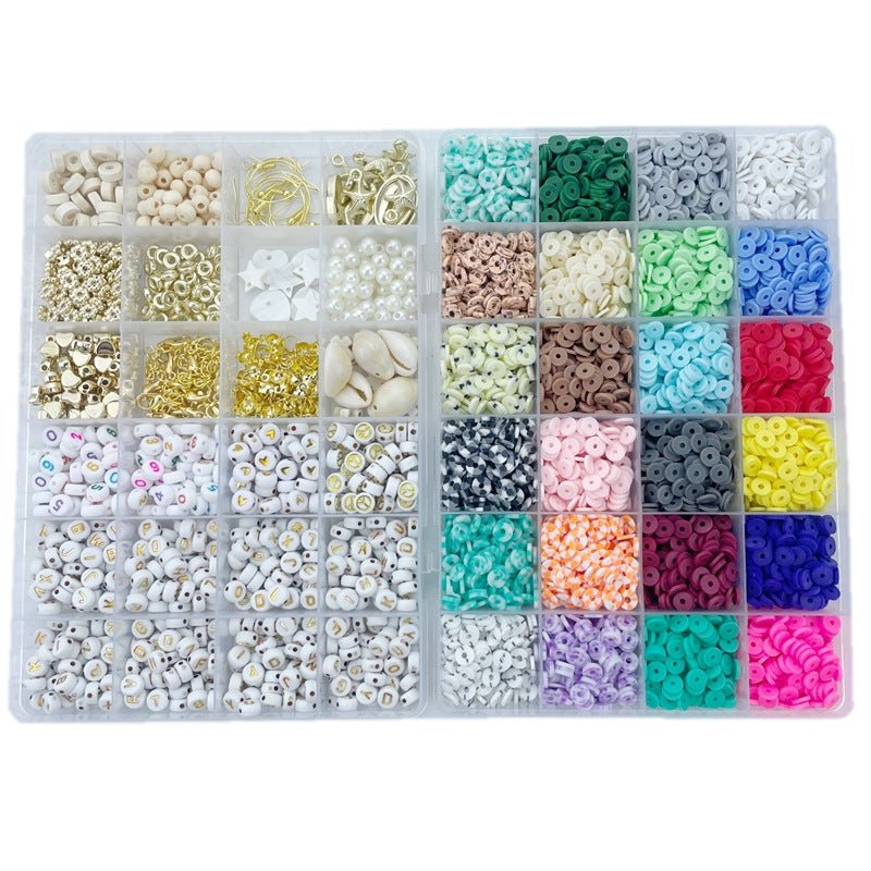 Bracelet Making Kit Friendship Clay Beads 2 Boxes Flat Polymer Clay Beads for Jewelry Making Kit for Adult, 24 Colors 6000Pcs with Letter Beads Heishi Beads DIY Crafts for Girls with Gift Pack