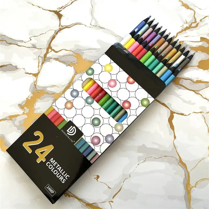 Dededepraise Metallic Colored Pencils, Painting Supplies For Kids ,with Extras Quality Wax Cores With Shimmering Shades,Break Resistant.12/24 Art Drawing Pencils For Adult Coloring & Sketching Vibrant Colors