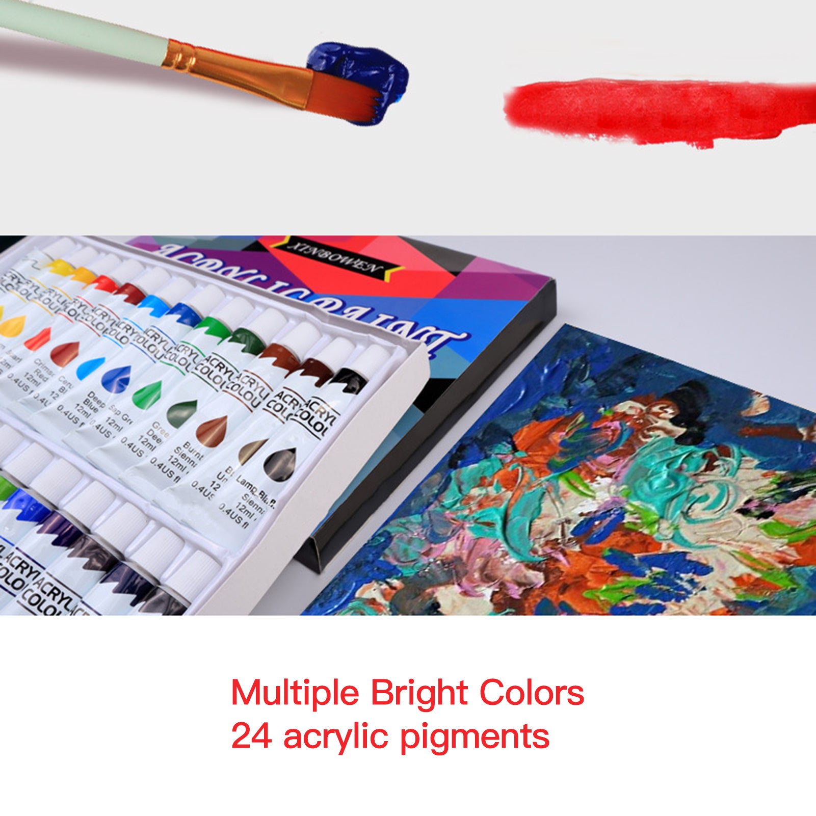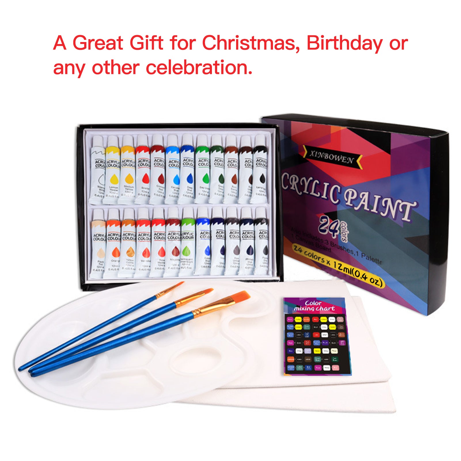 30Pcs Art Drawing Set 24 Colors Acrylic Paint with 3 Brushes Paint Palette Canvas for Kids/Teens/Adults