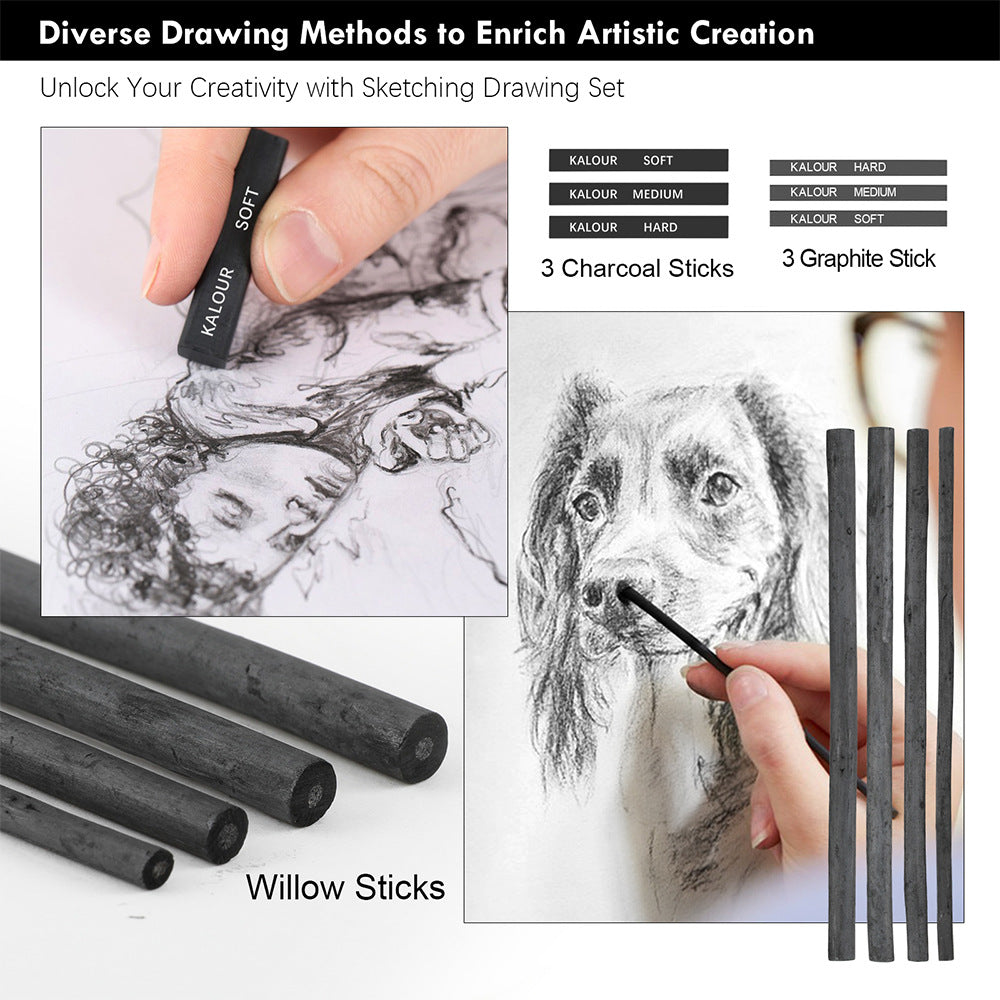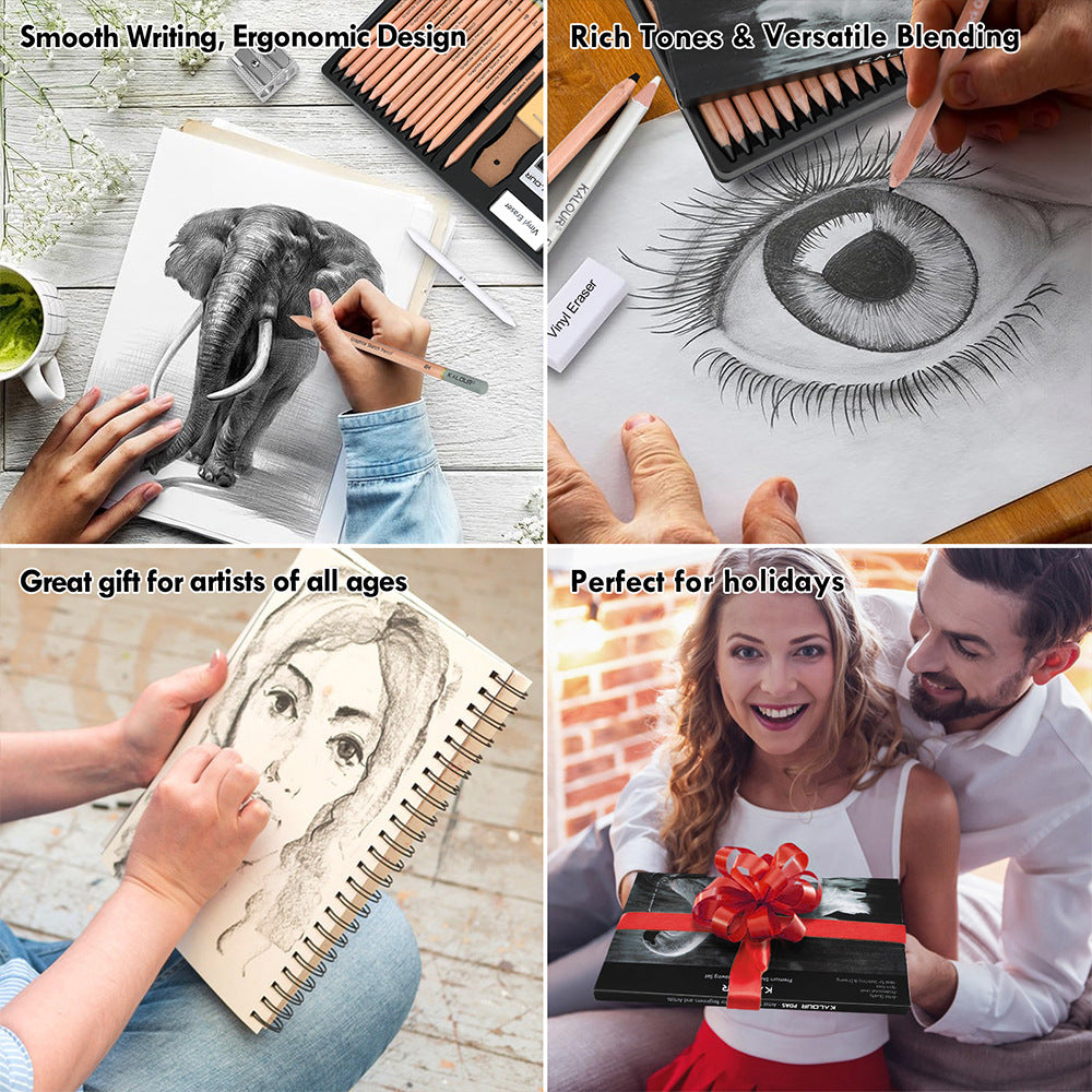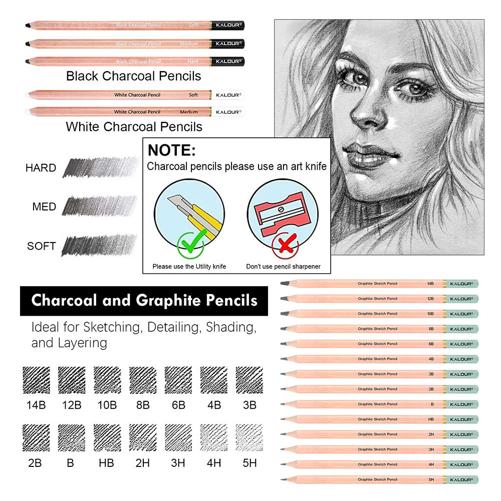 39 pcs Graphite Sketch Pencil Set Art Supplies Professional Premium Sketching and Drawing Pencil Set With Graphite Pencils White Black Charcoal Pencils in Paper Box