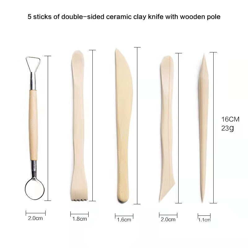 5pcs DIY Clay Sculpture Pottery Tools Set Multifunctional Carving Point Drill Pen Ceramics Sculpting Sponge Scraper Tools