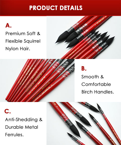 This paintbrush set is an animal-friendly brush with all the benefits of natural hair and none of the drawbacks! It has soft and flexible hair and a premium birch handle. and is durable and washable. further with good water absorption.