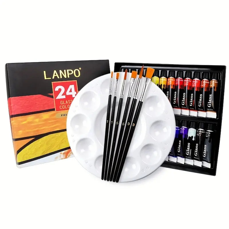Create stunning works of art with this Acrylic Paint Set! This set is perfect for use on surfaces like glass, porcelain, and ceramic and comprises 6 brushes, 1 palette, and 12/24 non-toxic colors for a complete art tool kit. Impress your guests with your creative designs!