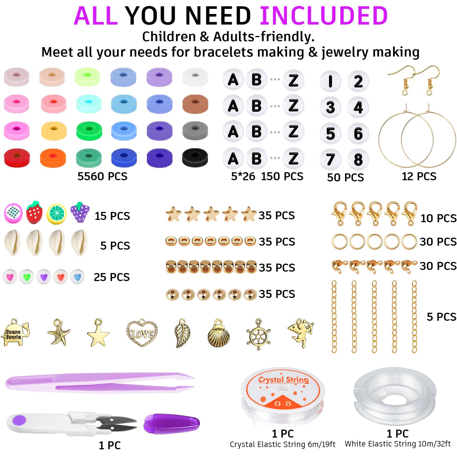 6000 Clay Beads Bracelet Making Kit, 24 Colors Flat Preppy Beads for Friendship Bracelets  Polymer Clay Bead with Charms for Jewelry Making Crafts Gifts for Girls Ages 6-12