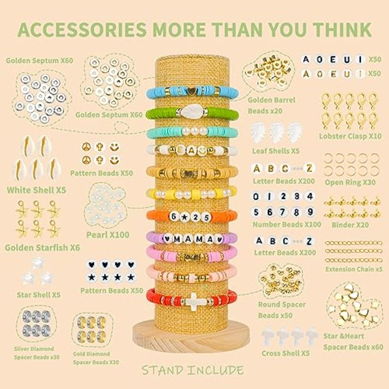 Clay Beads with Display Stand, Bracelet Making Kit for Girls 24 Colors 2 Boxes, with 500pcs Letter Beads Number Beads, Friendship Bracelets Jewelry Making