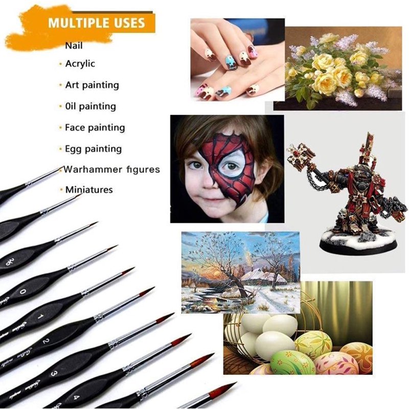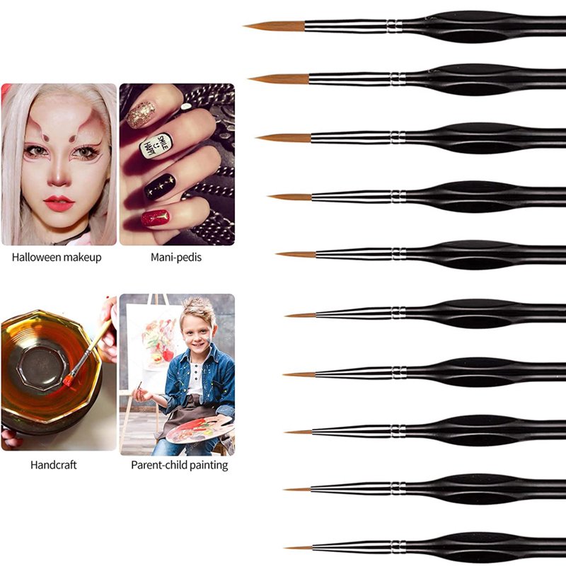 Detailing Brush Set 10pcs Artist Fine Tips Paint Brushes Set Nylon Fine Detail Brush Line Pen Professional Painting Art Supplies For Fine Detailing and Art Drawing Acrylic, Watercolor, Oil Painting, Crafts, Modeling, Nails
