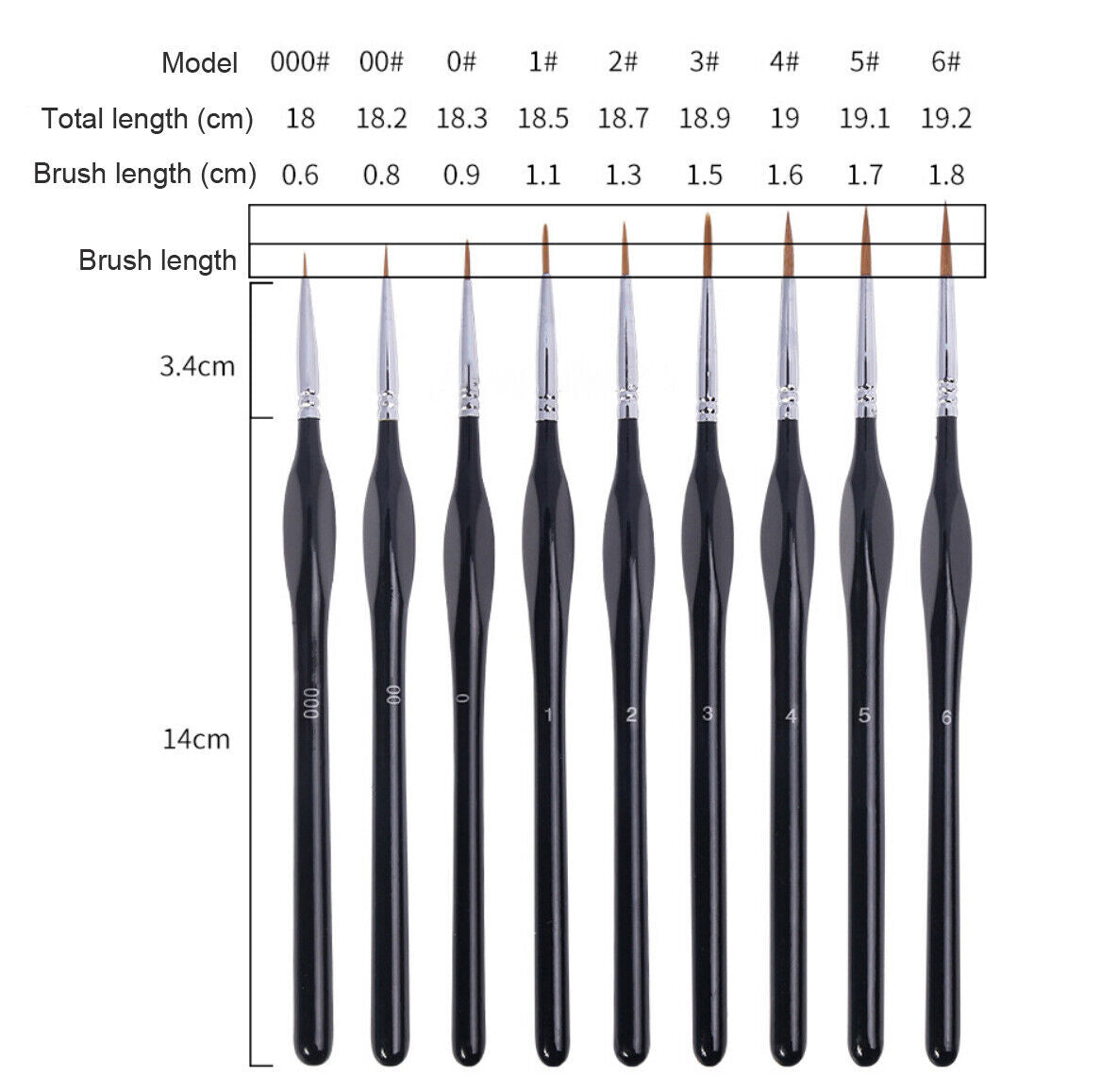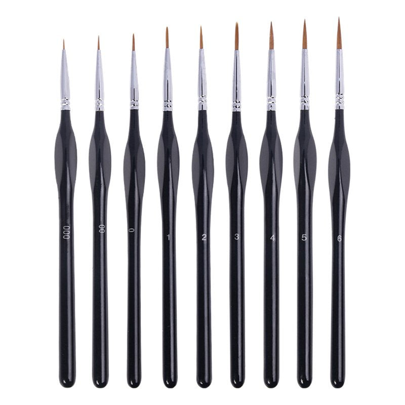 Detailing Brush Set 9pcs Artist Fine Tips Paint Brushes Set Nylon Fine Detail Brush Line Pen Professional Painting Art Supplies For Fine Detailing and Art Drawing Acrylic, Watercolor, Oil Painting, Crafts, Modeling, Nails