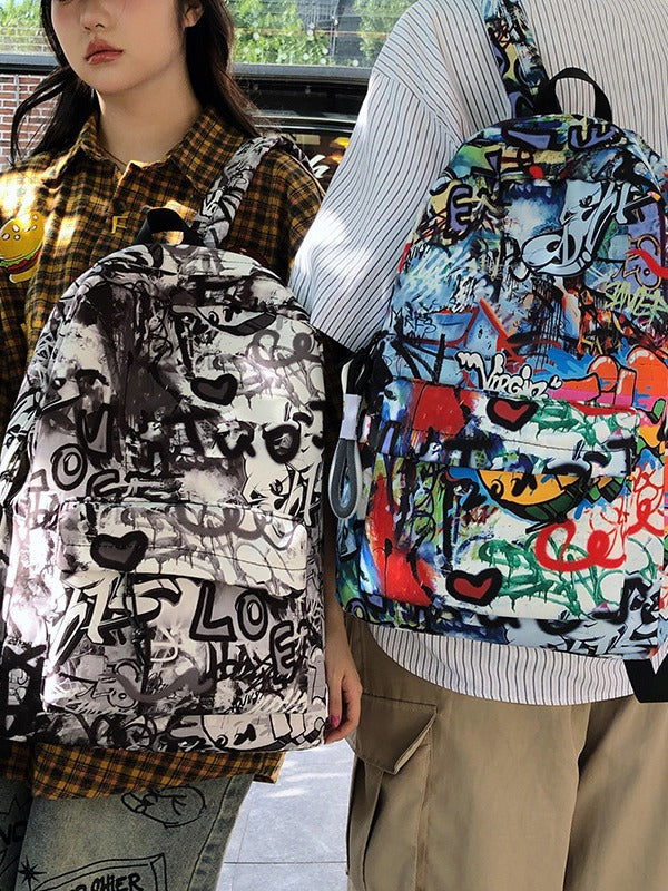 Schoolbag Large Capacity Personalized Graffiti Japanese Style Casual Backpack Boys Junior High School Students Fashionable Girls Backpack With Pendant
