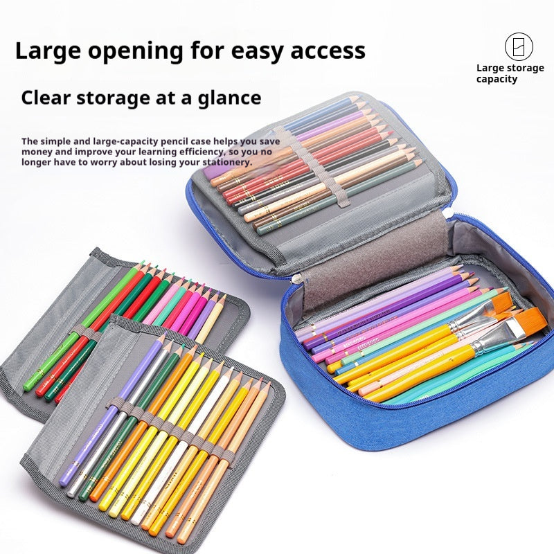 Multi-Functional Stationery Pencil Pouch Stretchy 72 Slots Colored Pencil Case Portable Pencil Bags With 2 Removable Sleeves