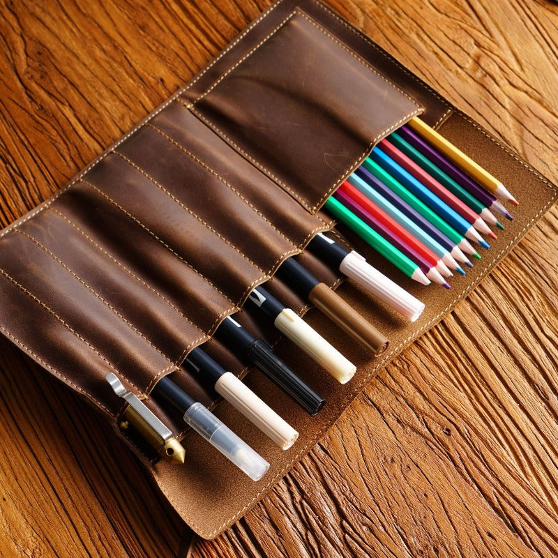 Multifunction Pencil Case Genuine Leather Tie Rope Pens Bag Stationery Storage Bags School Supplies For Student Boys Girls