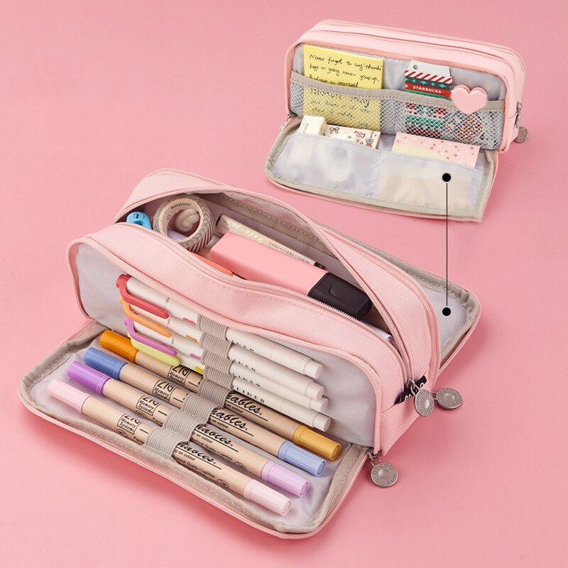 Pencil Case Macaron Color Double Side Pen Bag Junior High School Students Pen Storage Pouch Stationary Storage Bags