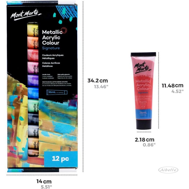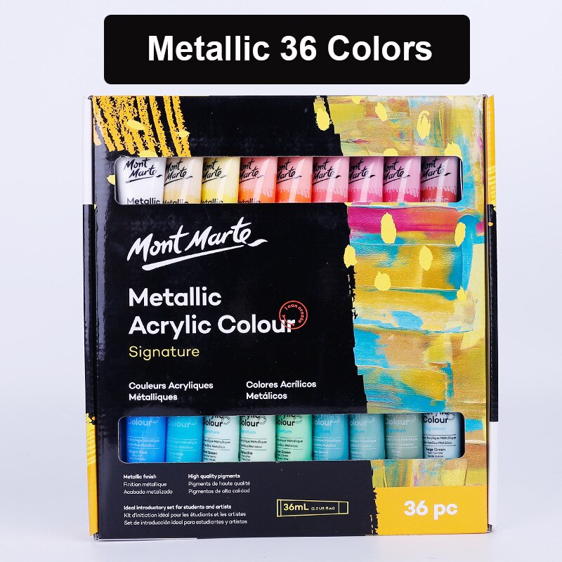MONT MARTE Premium Metallic Acrylic Paint Set 12/24/36 Colors 36ml Tubes Suitable for Most Surfaces Including Canvas Paper and Wood