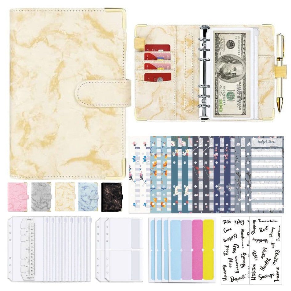 A6 Budget Binder,PU Leather Marble A6 Binder with Zipper Cash Envelopes Binder Pockets,Expense Budget Sheets,Label Stickers CashnOrganizer Planner chart Money Saving Binder Budgeting