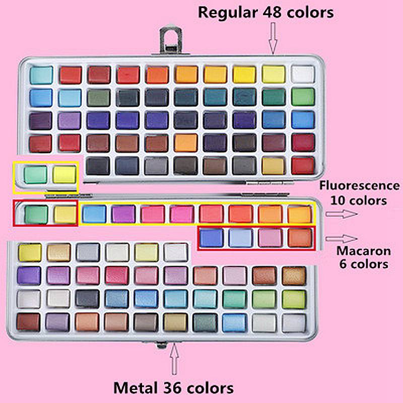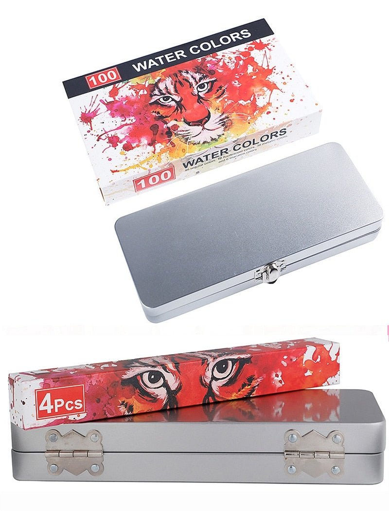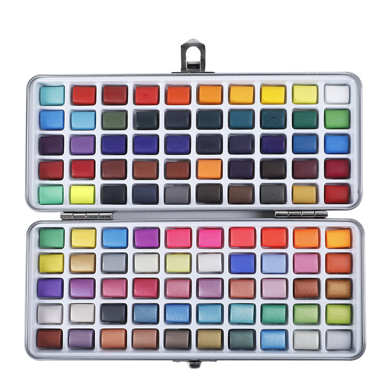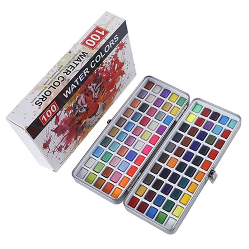 Solid Watercolor Paint Set Portable Travel Metal Box Watercolor Pigment for Beginner Painting Watercolor Paper for Drawing Art Paint Supplies 100Color