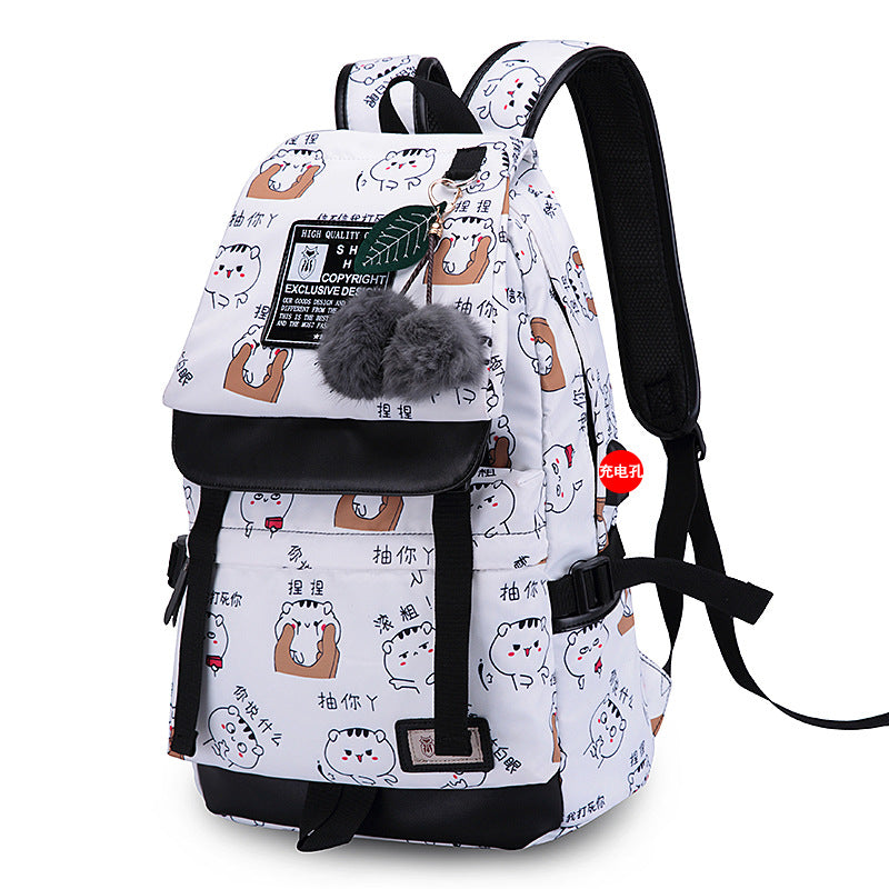 Back to School New Backpacks For Girls Kids Primary Middle School Bags Bookbag Waterproof Printed Travel Backpack With USB Charge Port Bowknot Fur Ball