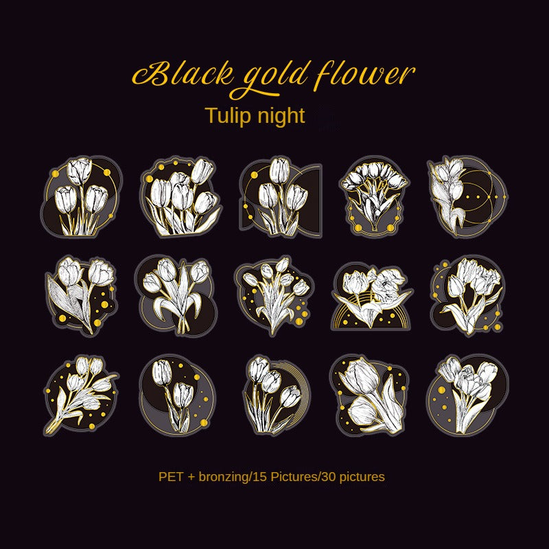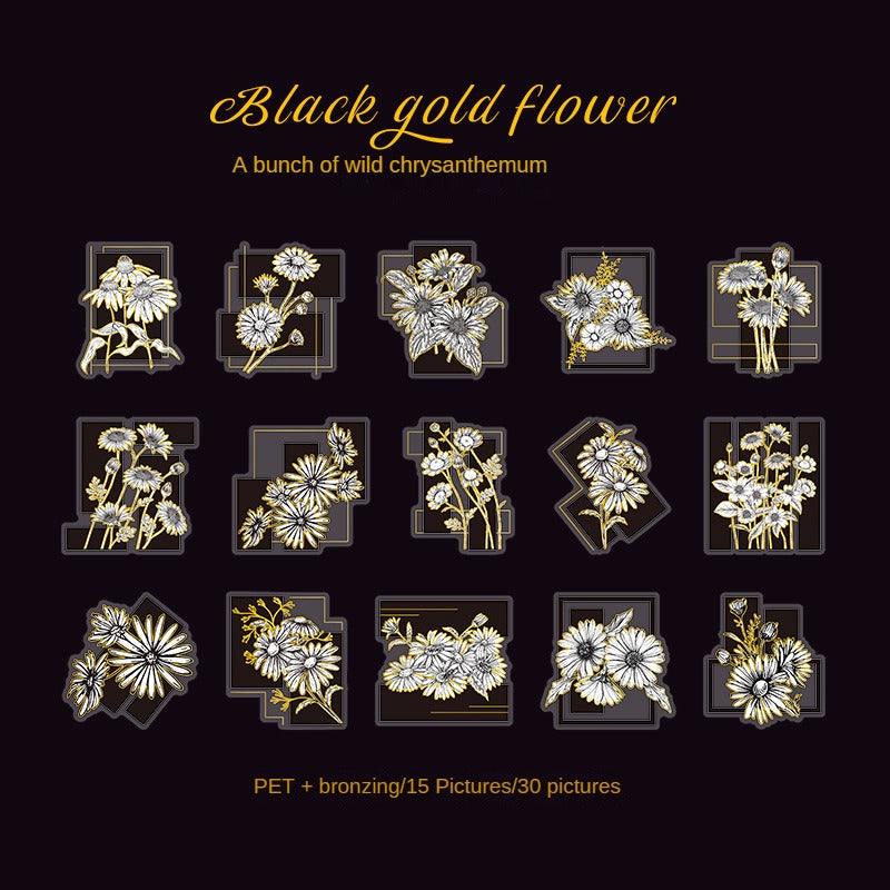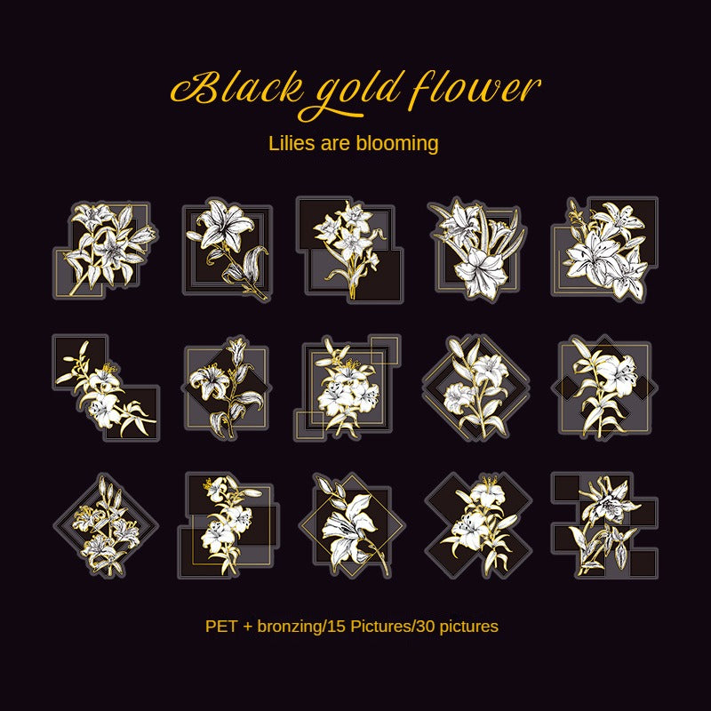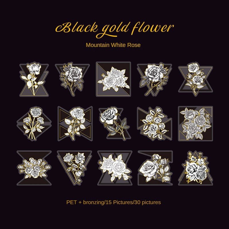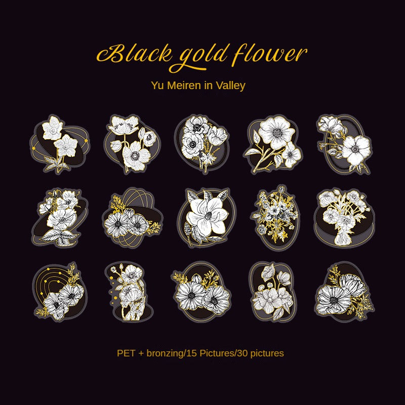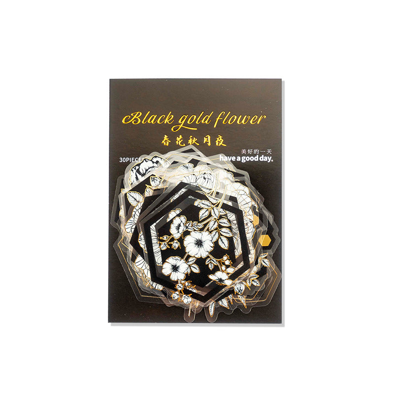 30 Pcs/ pack White Black Golden Outline Flowers DIY Waterproof Households Decorative Stickers