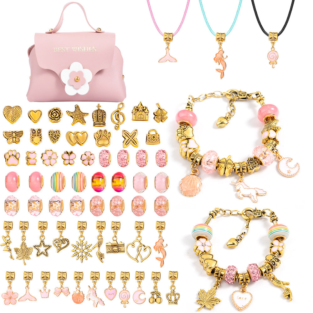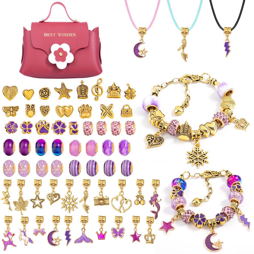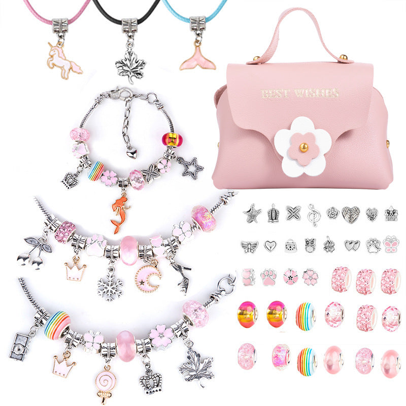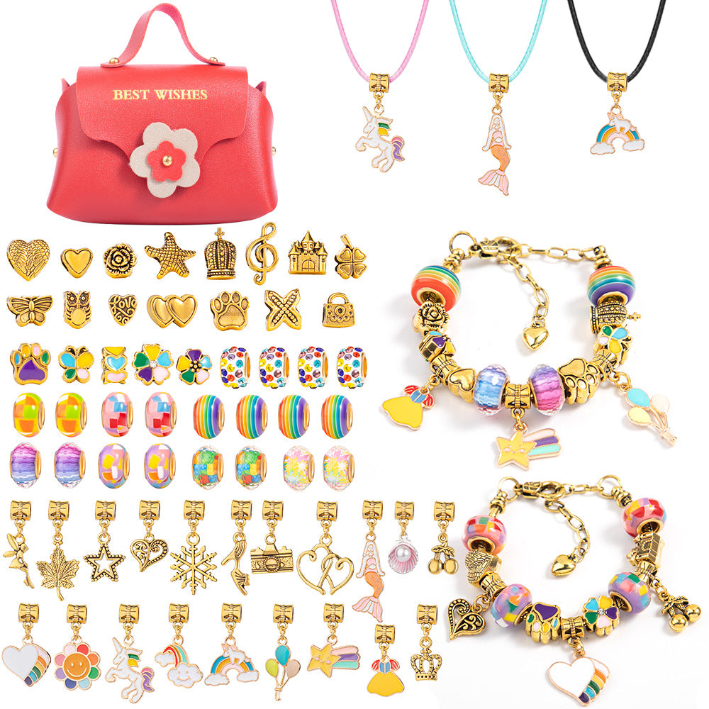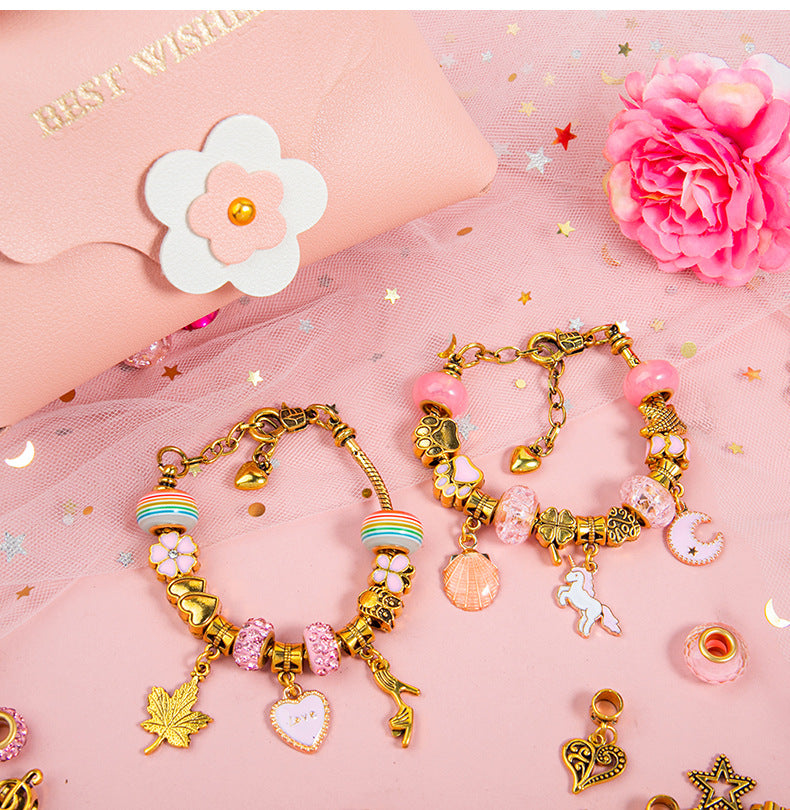 1 Set Charm Bracelet Making Kit Girls Beads for Jewelry Making Kit, Unicorns Arts Crafts Gifts Set for Teen Girls Age 5 6 7 8-12 with Dark Red Gift Bag