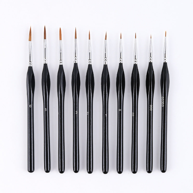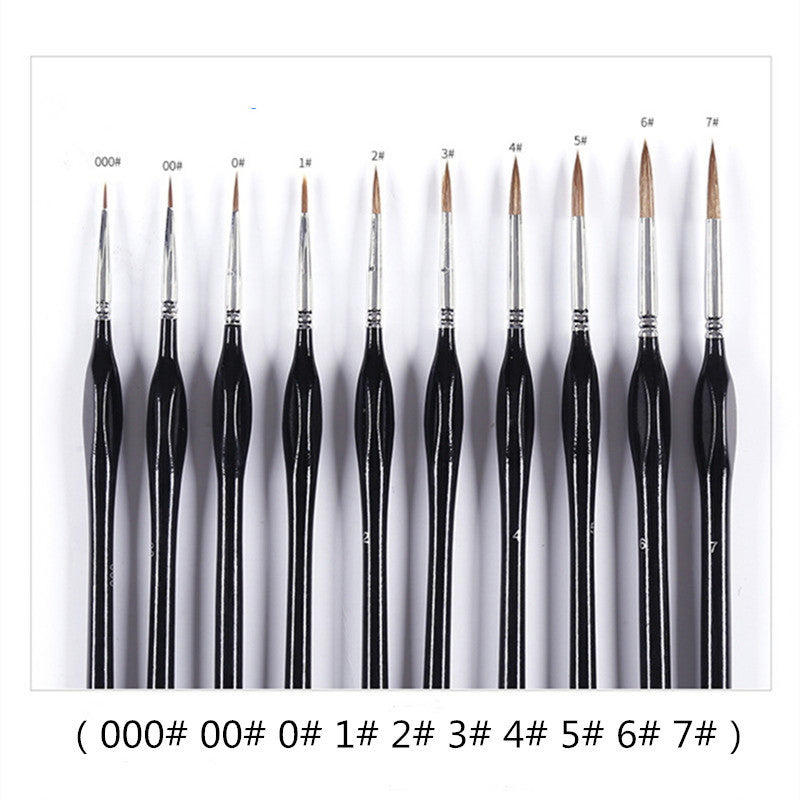 10 Pcs Set Extra Fine Tip Paint Brush Set Miniature Detail Paint Brush With Wood Handle