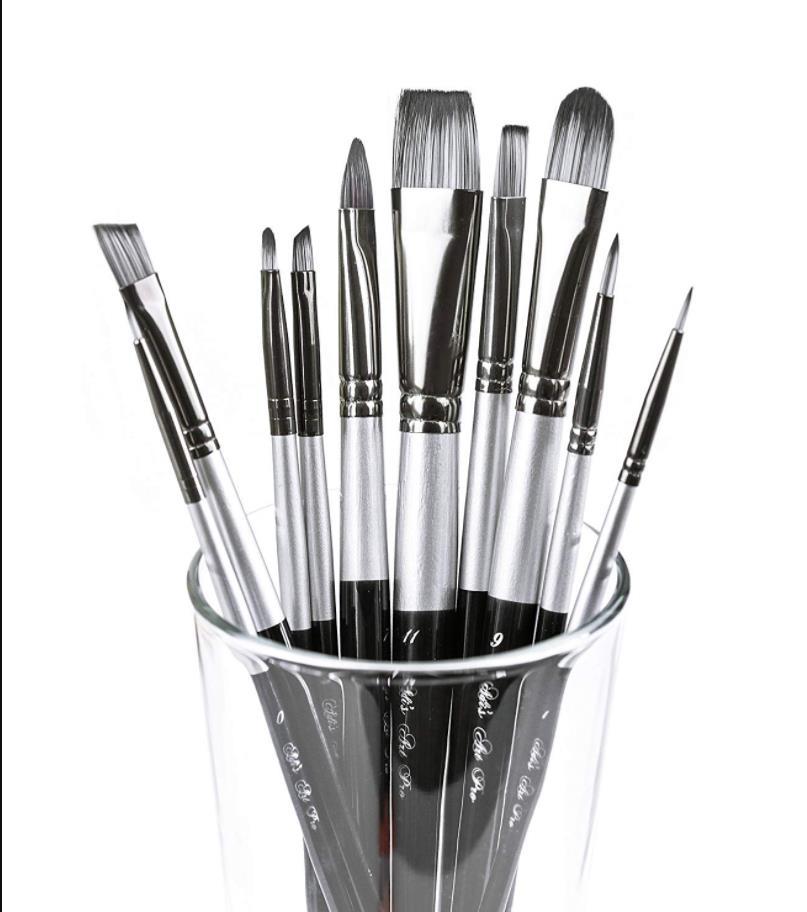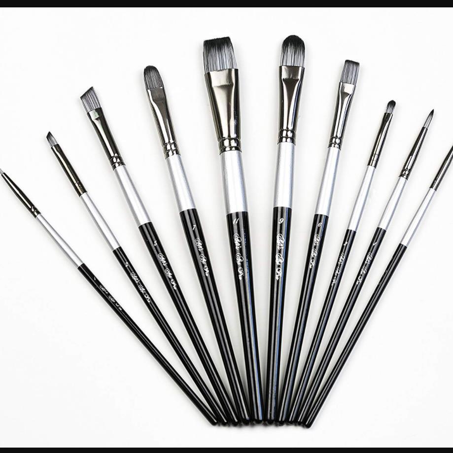 10pcs Professional Acrylic Paint Brushes Set With Synthetic Nylon Tips
