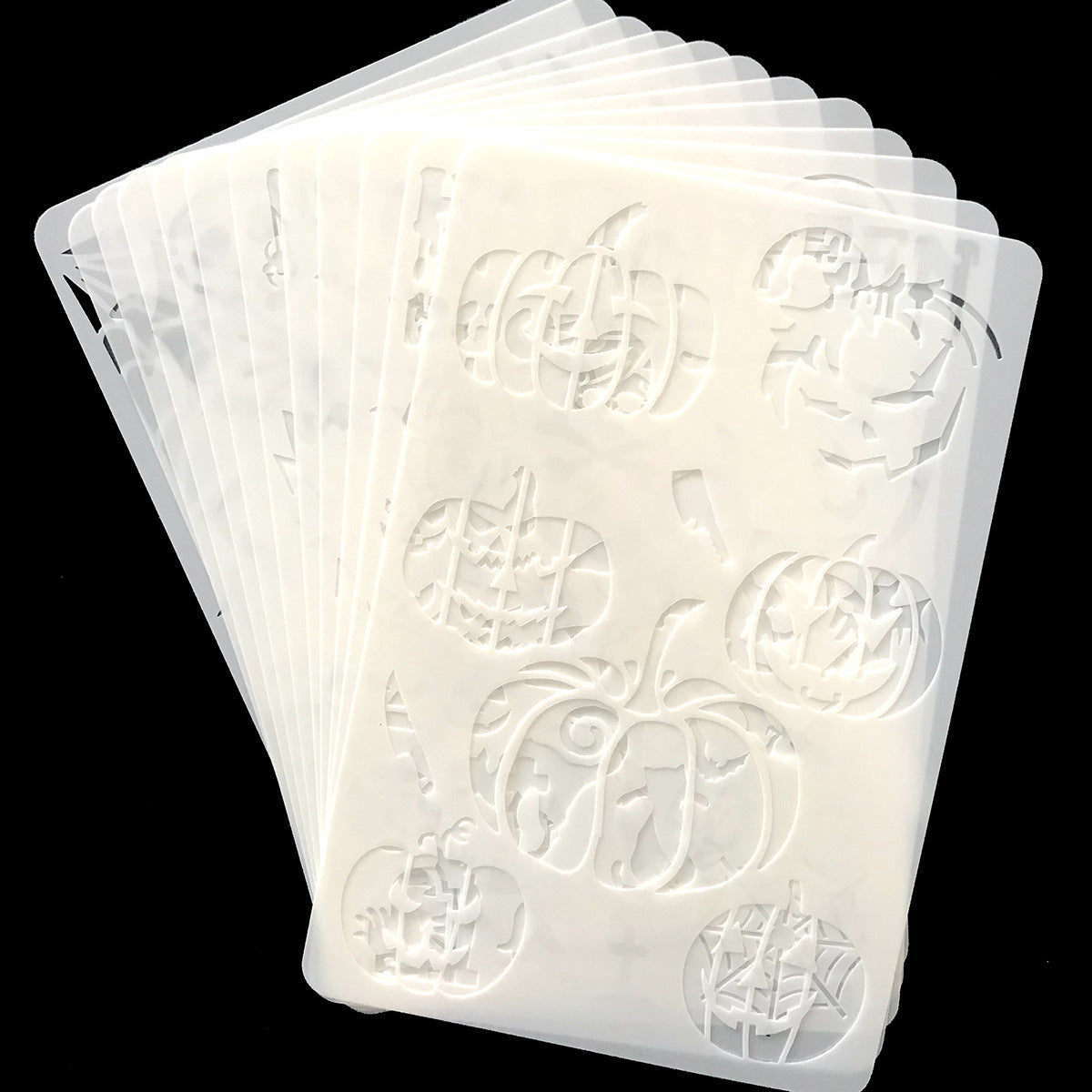 12 pcs Halloween theme Mask Stencil DIY Hollow Out Painting Templates Hand Copied Report Templates Hand Drawn