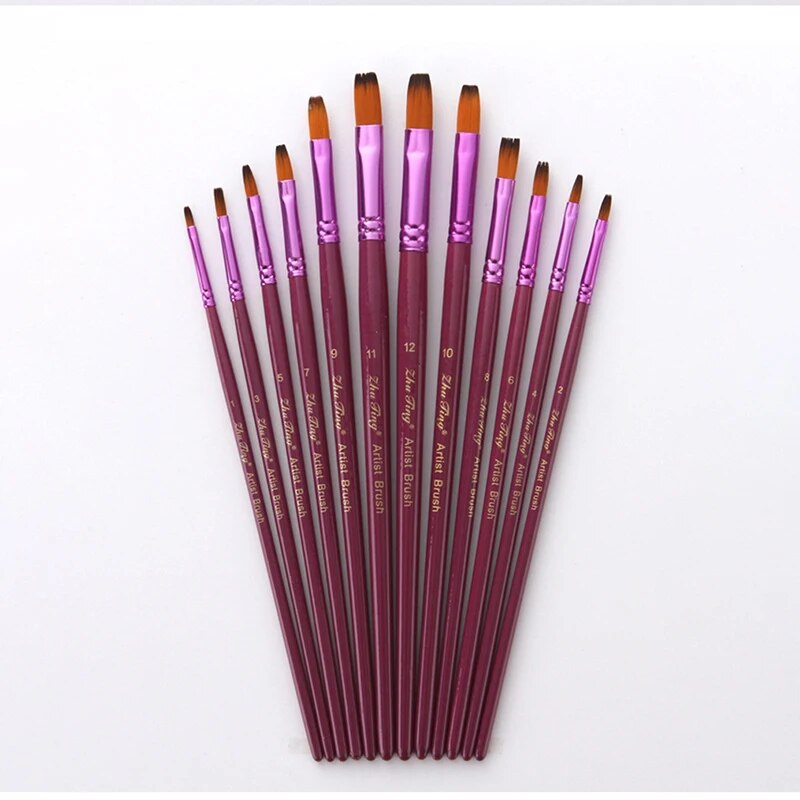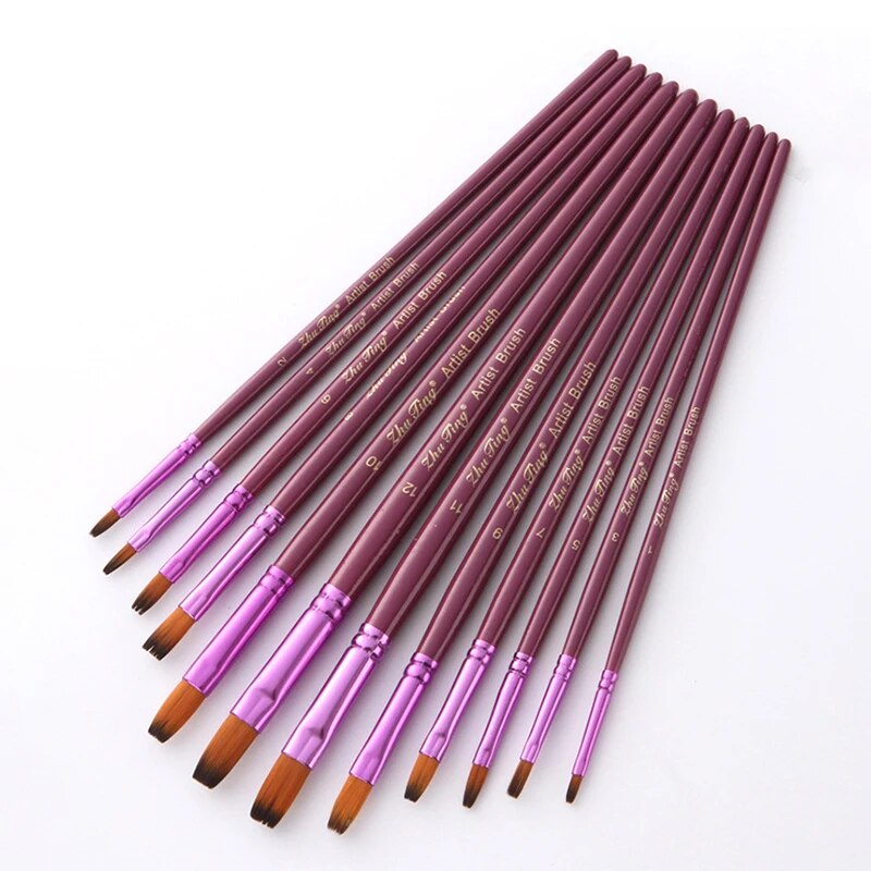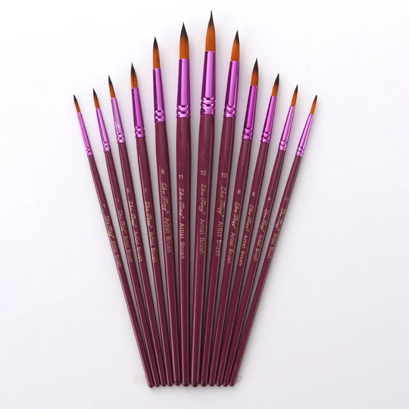 12PCS/Set Fine Nylon Hair Paint Brush Set Nylon Hair Professional Kids Face Body Paint Brushes Halloween Face Cosplay Painting Drawing Brushes Nail Art Tool Kit For Watercolor Acrylic Oil Painting Brushes Drawing Art Supplie