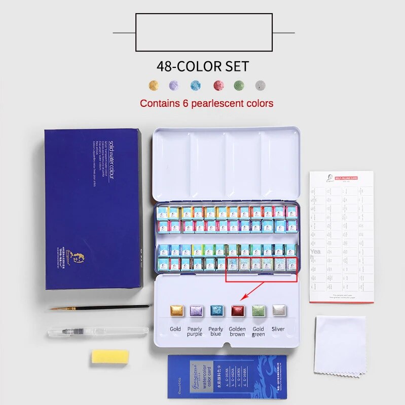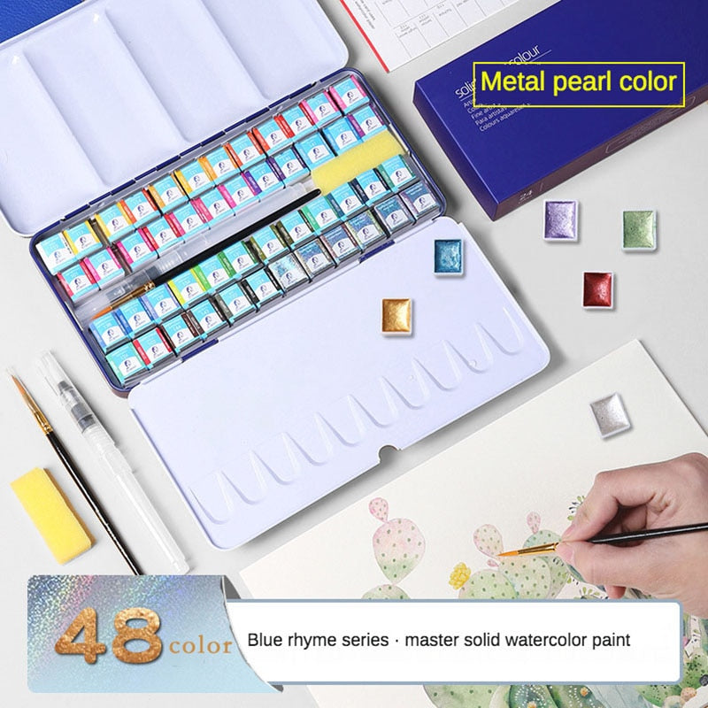 24/36/48 Portable Solid Watercolor Set Art Supplies with Metal Case Glitter Mini Watercolor Professional Paint Drawing Gifts