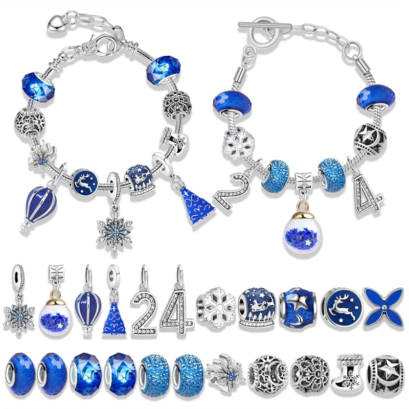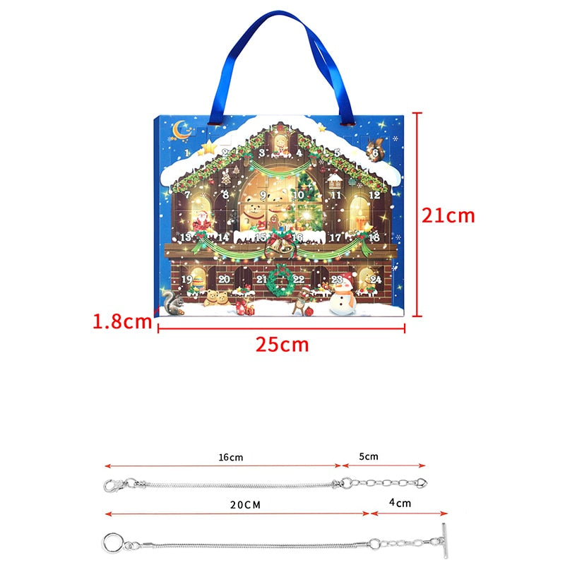 24 Days Countdown Calendar Gift Paper Box Set DIY Jewelry 22 Charm Beads 2 Bracelets Xmas Gift 2024 Christmas Advent Accessories