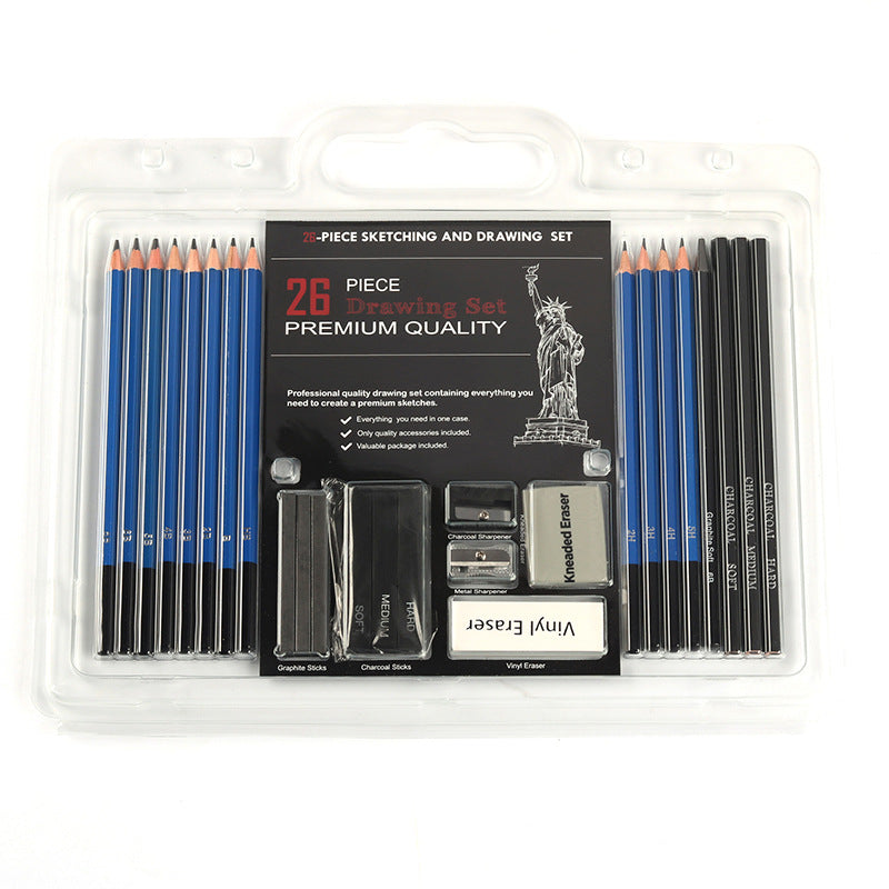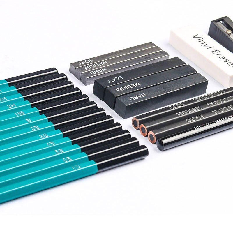 26Pcs Art Set Sketch Pencil 5H-8B Kits For Artist Drawing Charcoal Graphite Stick Bar Rod Knead Eraser Stationery