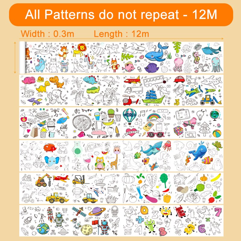 30*90CM Coloring Paper Roll For Kids Children's Drawing Roll Drawing Paper Roll DIY Painting Drawing Color Filling Paper