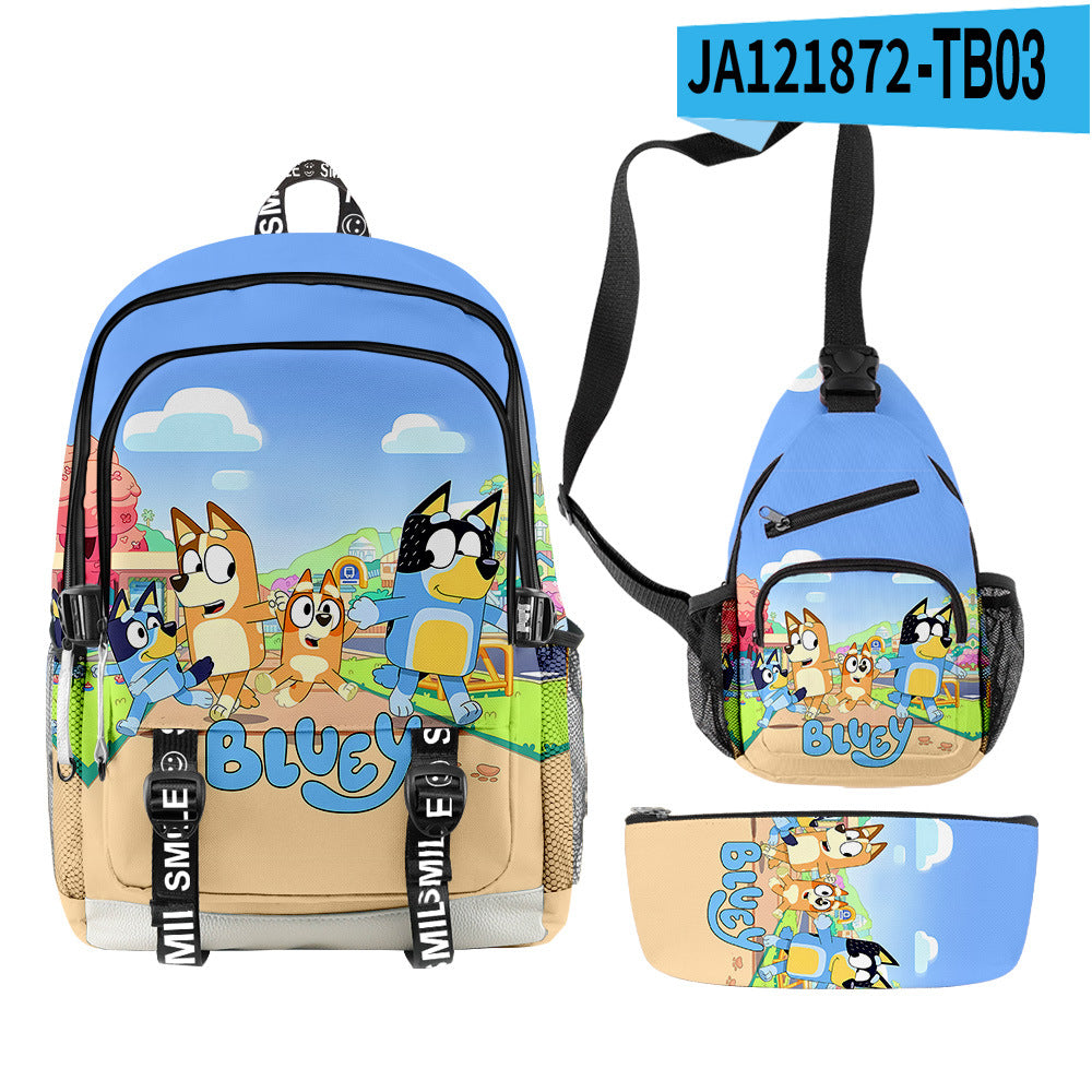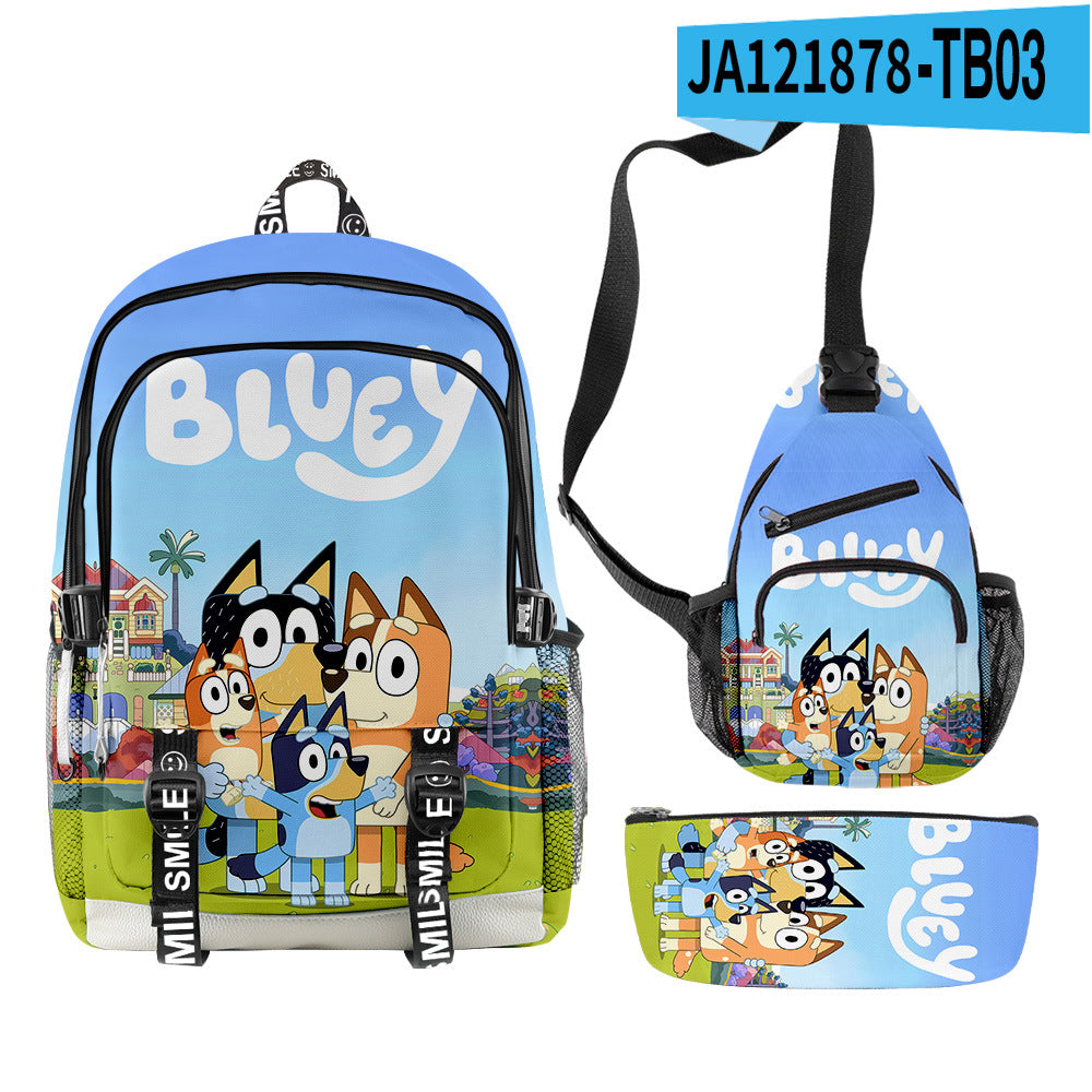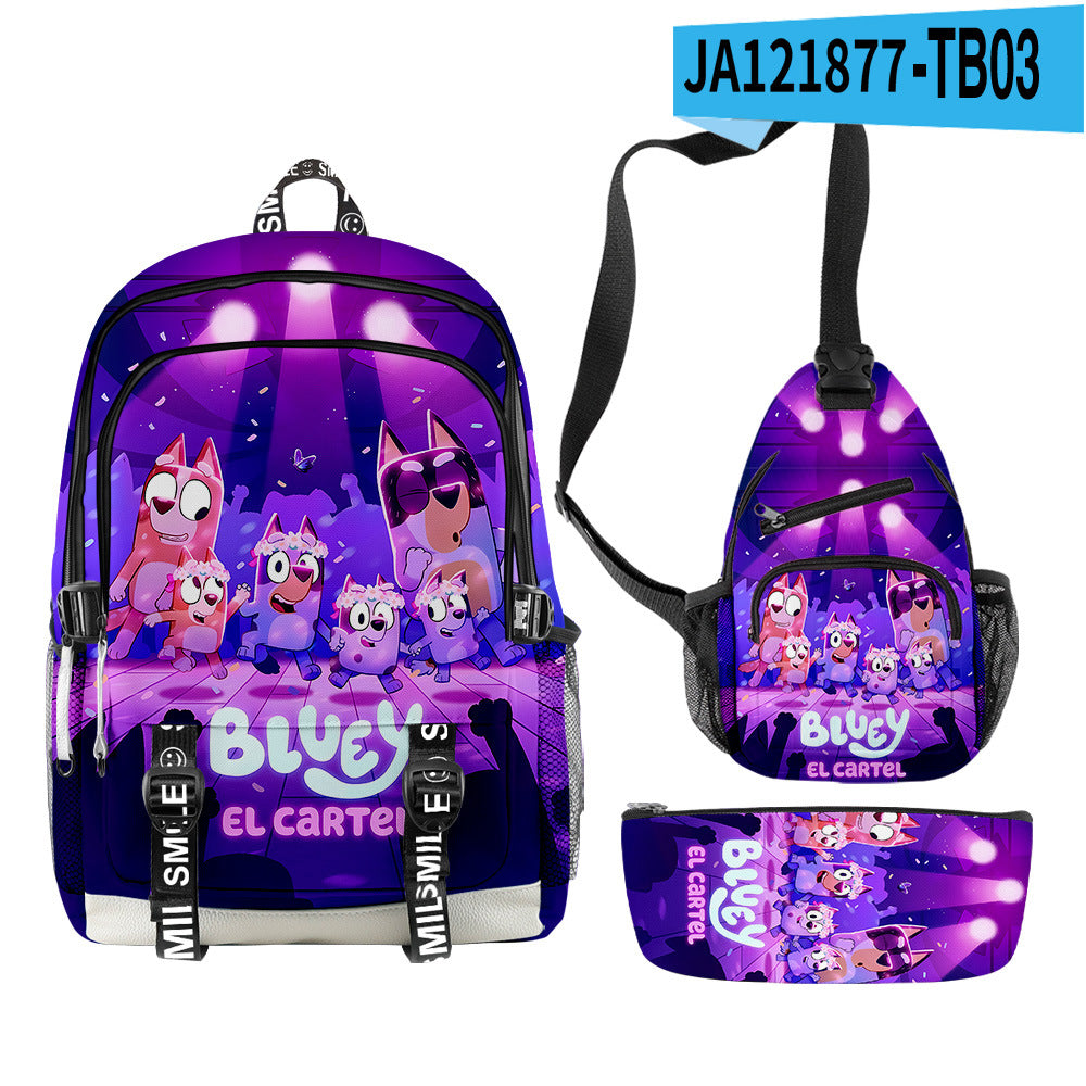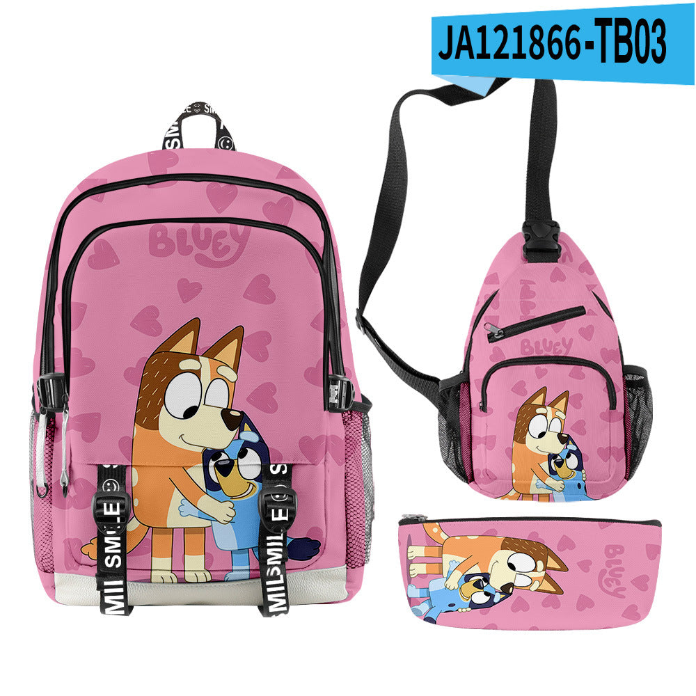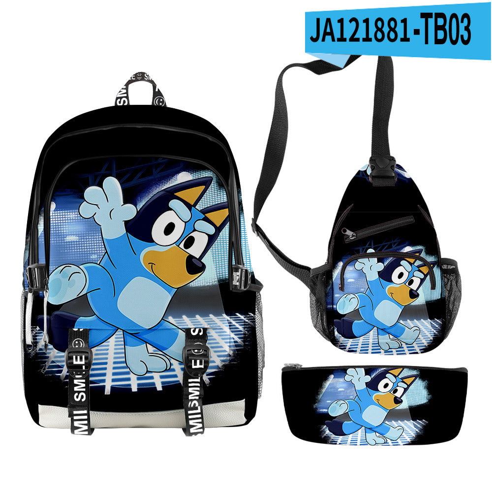 New Three-piece Girl Backpack Travel Storage Fashion Cartoon Large School Students Printed Bluey Backpack