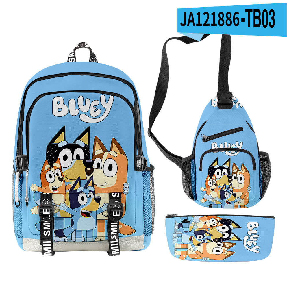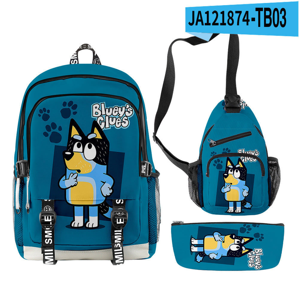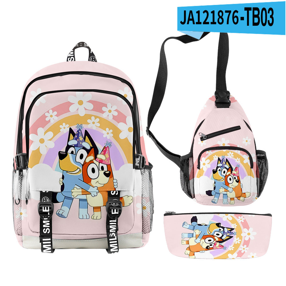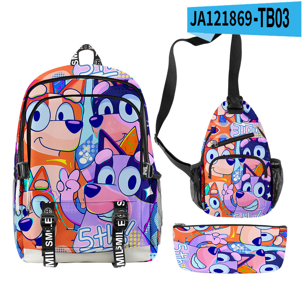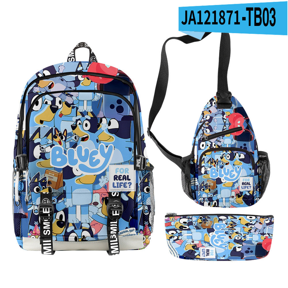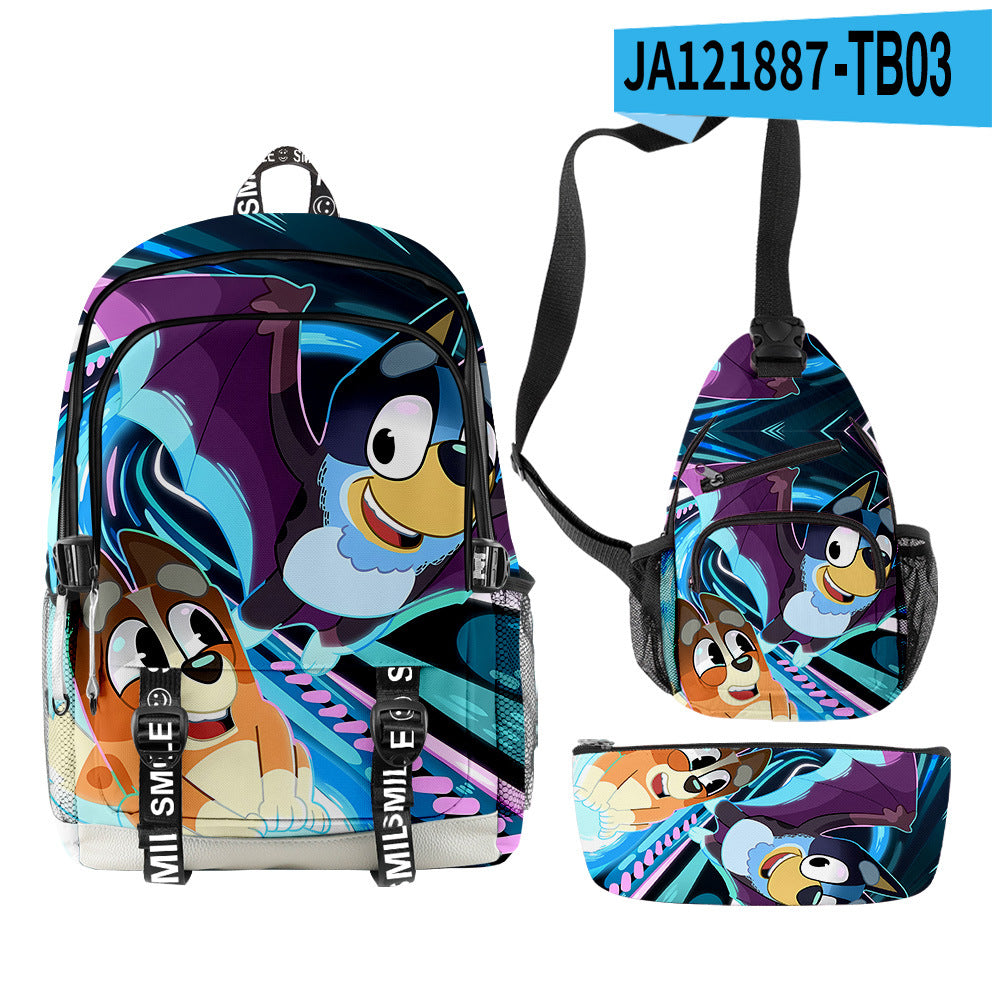 New Three-piece Girl Backpack Travel Storage Fashion Cartoon Large School Students Printed Bluey Backpack