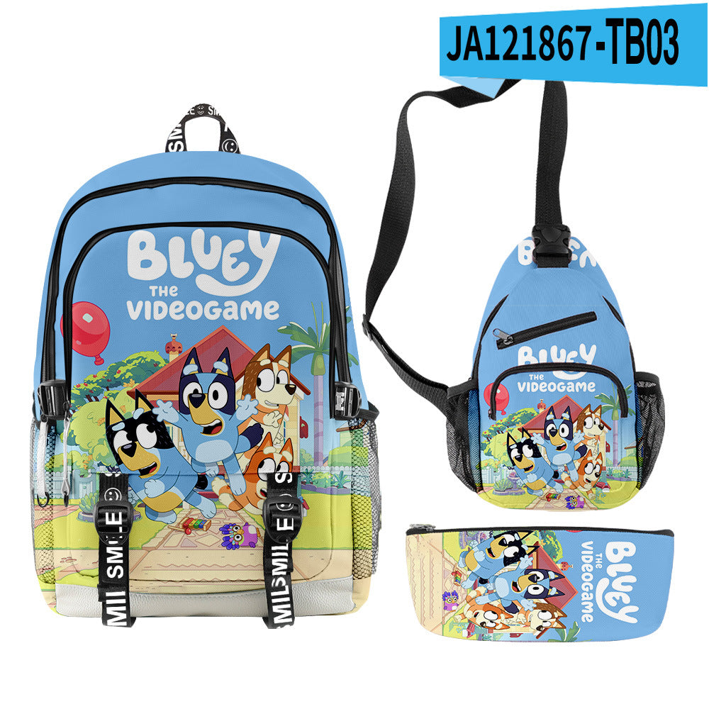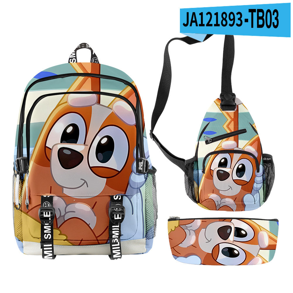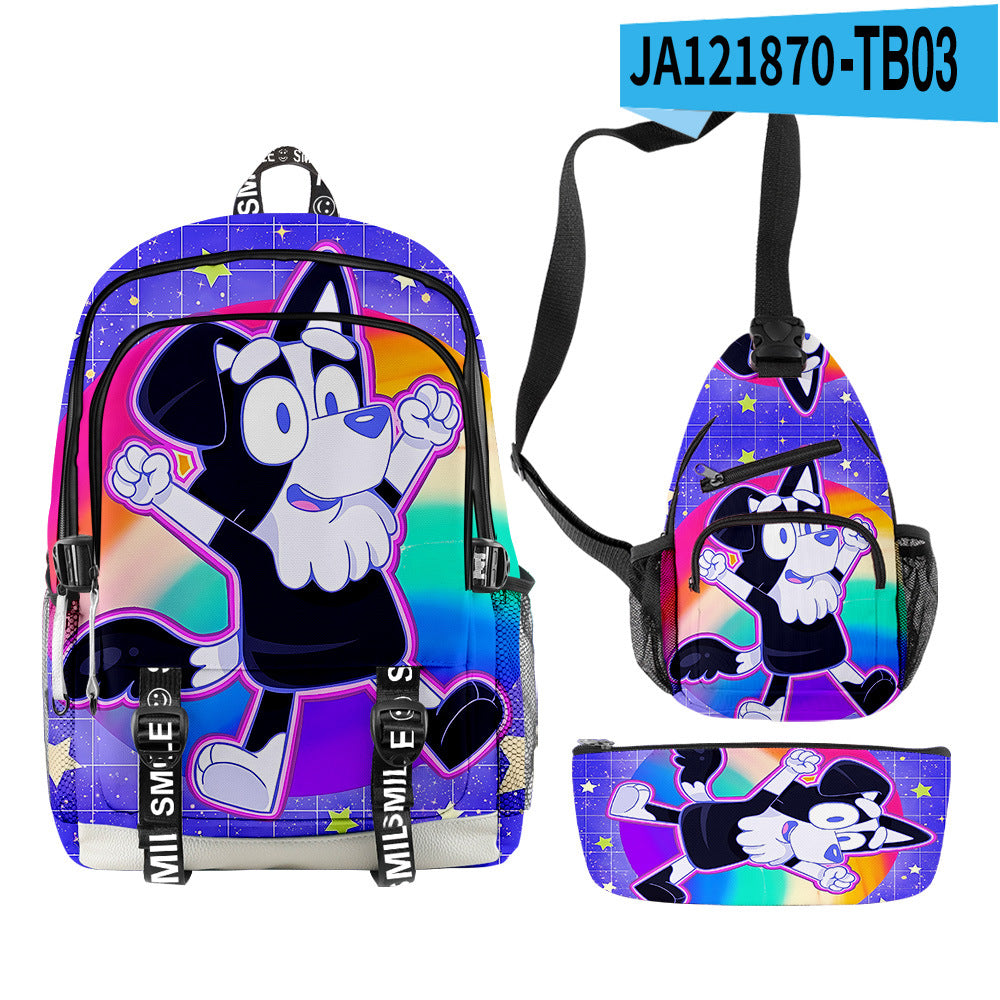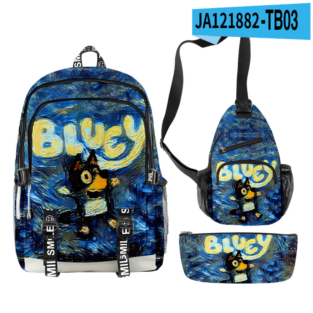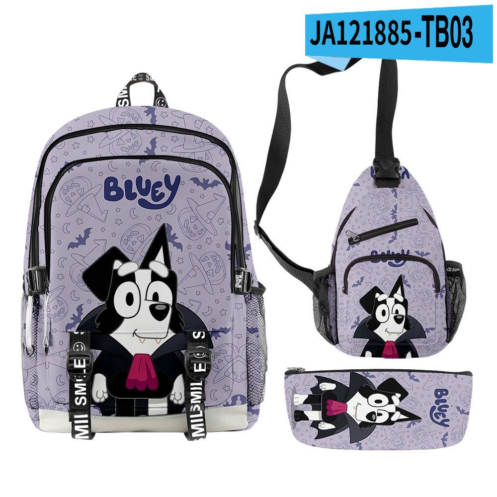 New Three-piece Girl Backpack Travel Storage Fashion Cartoon Large School Students Printed Bluey Backpack