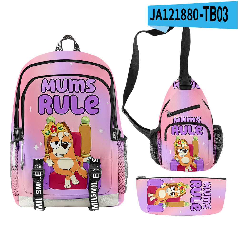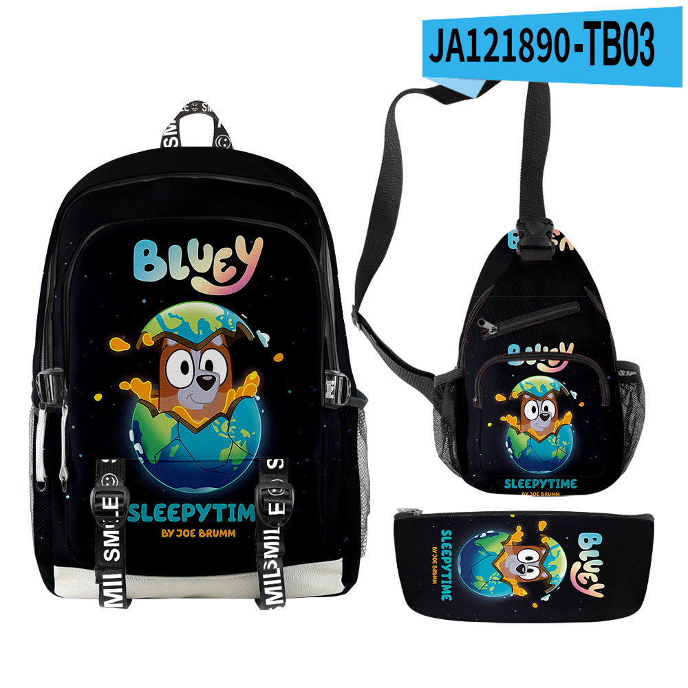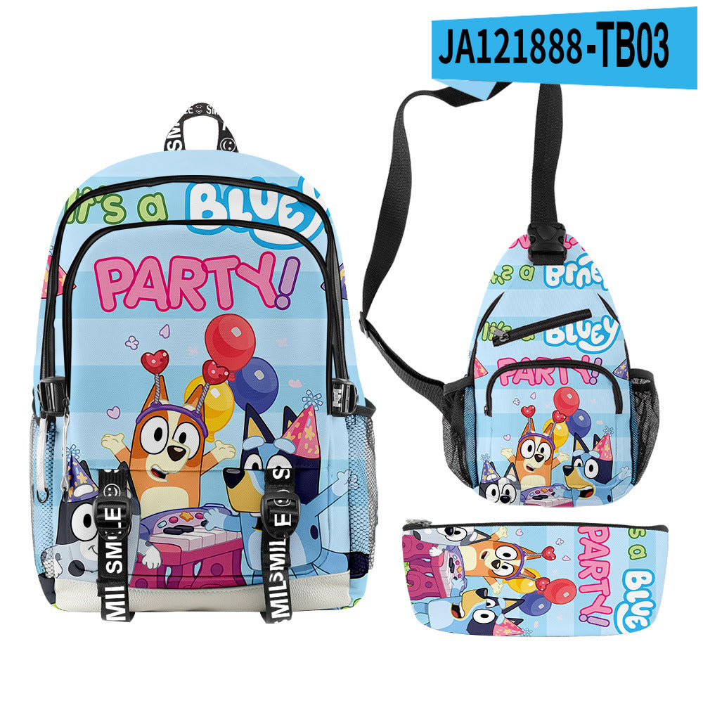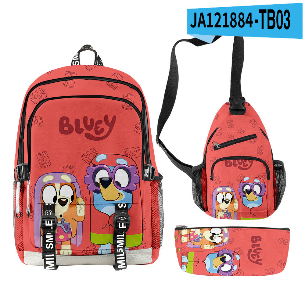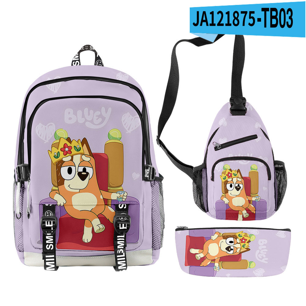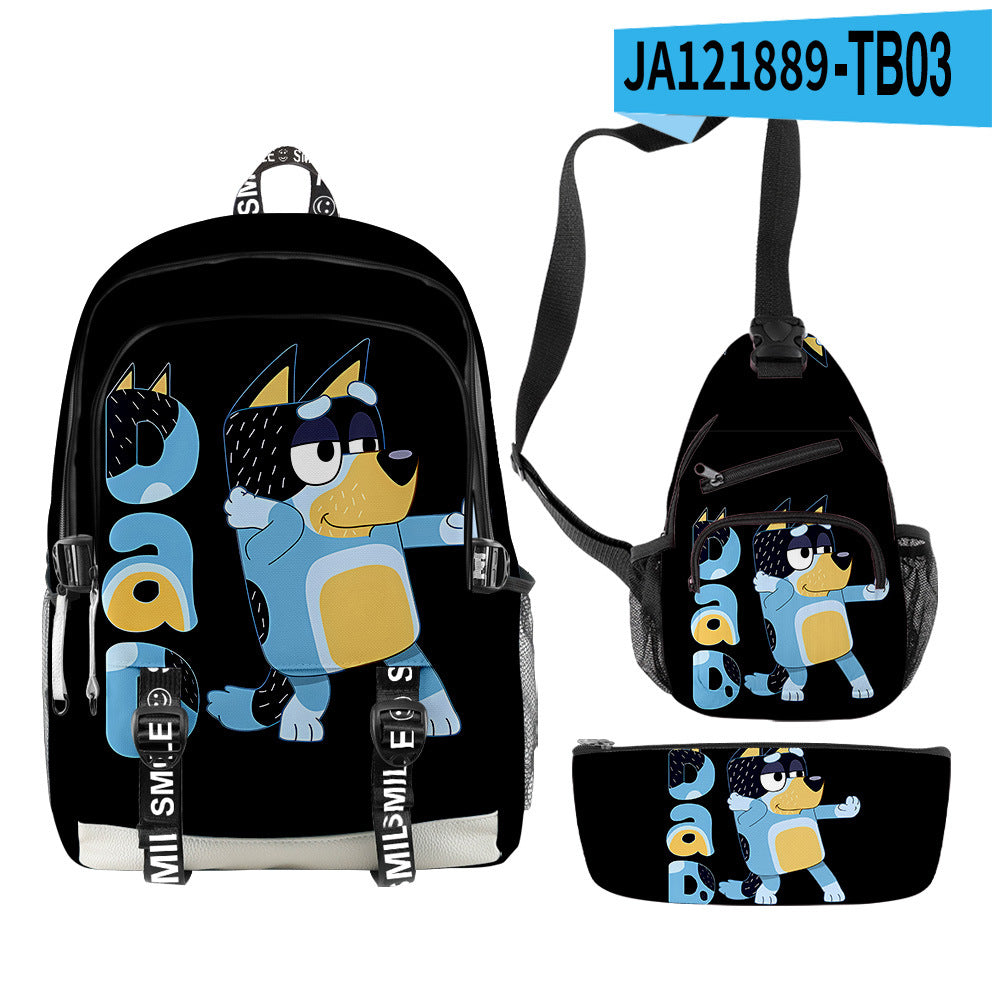 New Three-piece Girl Backpack Travel Storage Fashion Cartoon Large School Students Printed Bluey Backpack