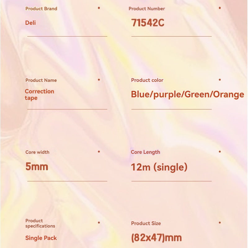 Deli 71542 Homework Correction Tape High-capacity 12 Meters Length Students Test Study Altered Tape Office Typo Correction Band Small and Portable