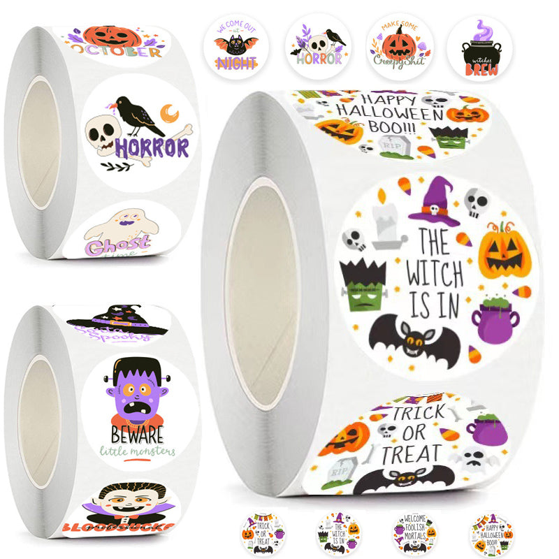 500pcs 1inch Halloween Stickers Roller for Gifts Cups Waterproof Kids Halloween Pumpkin Stickers for Halloween Decor 2.5CM