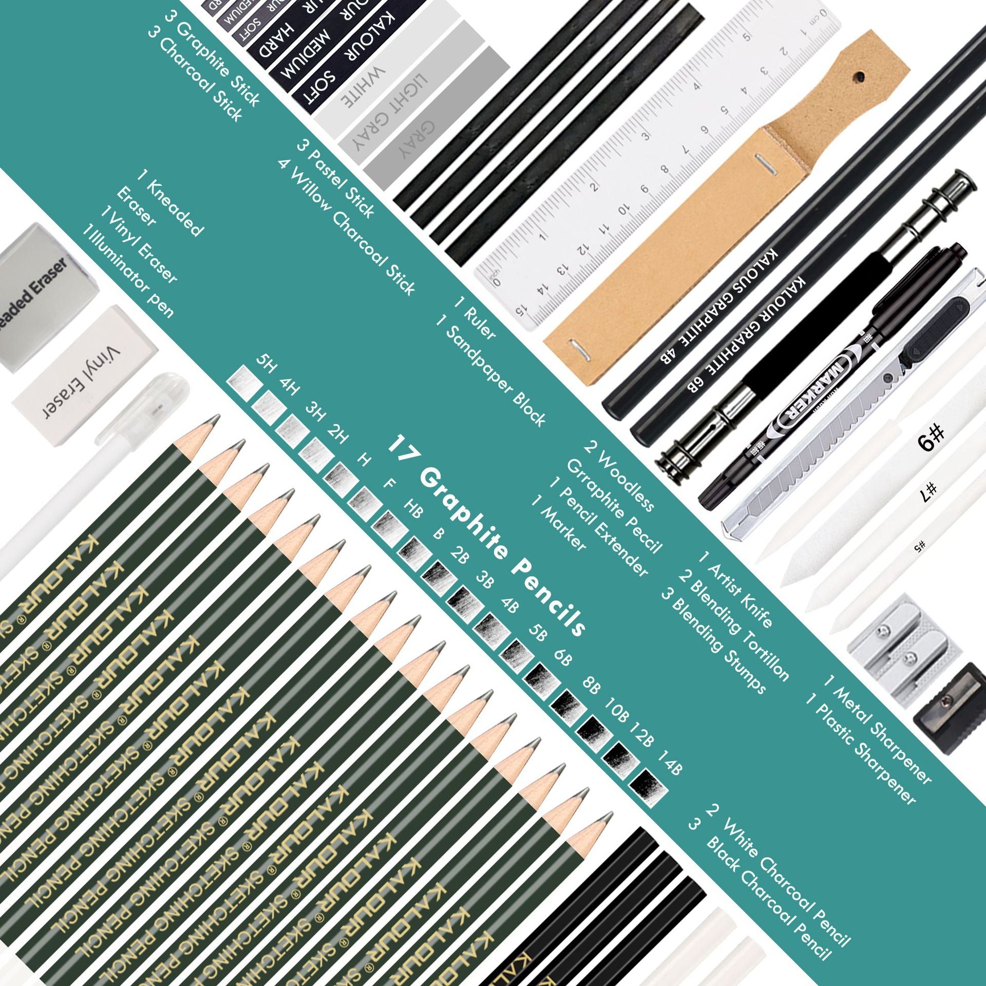 52pcs Graphite Charcoal Drawing Pencil Set Professional Sketch Wood Pencil Tool Kit Sketch Book For Beginner Art Supplies