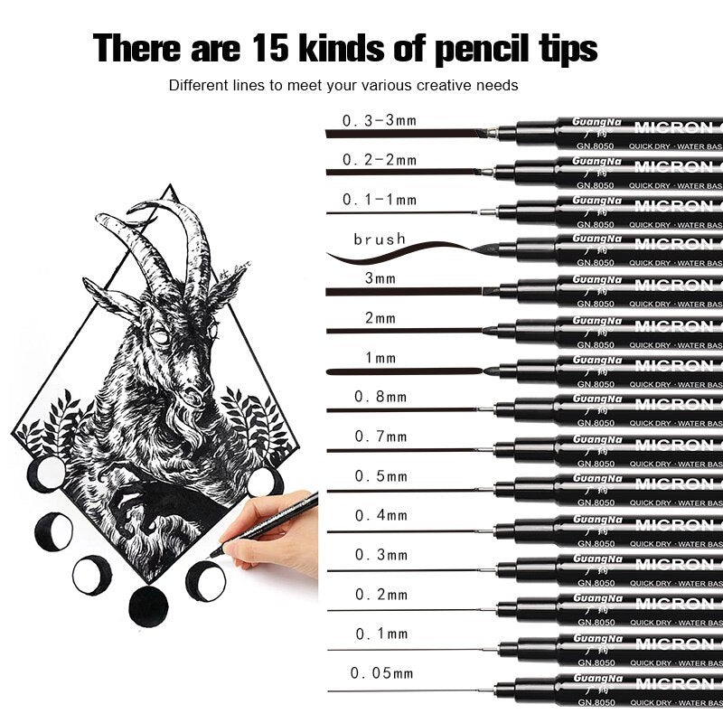 Refillable Black Ink Fineliner Waterproof Drawing Marker Pen Set