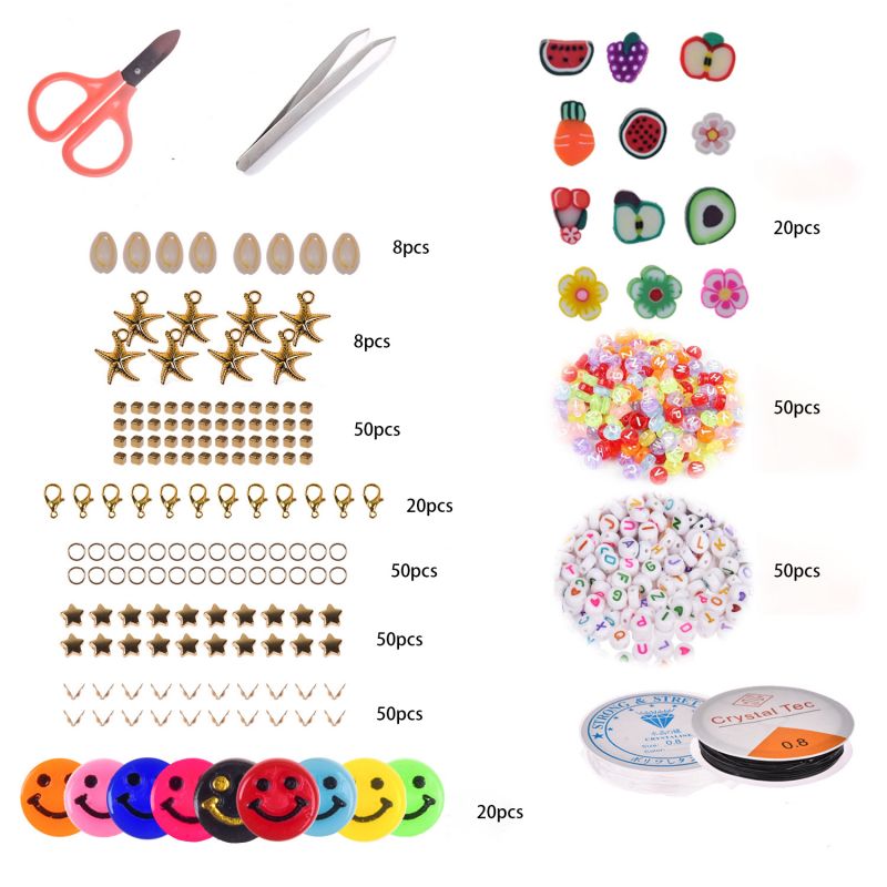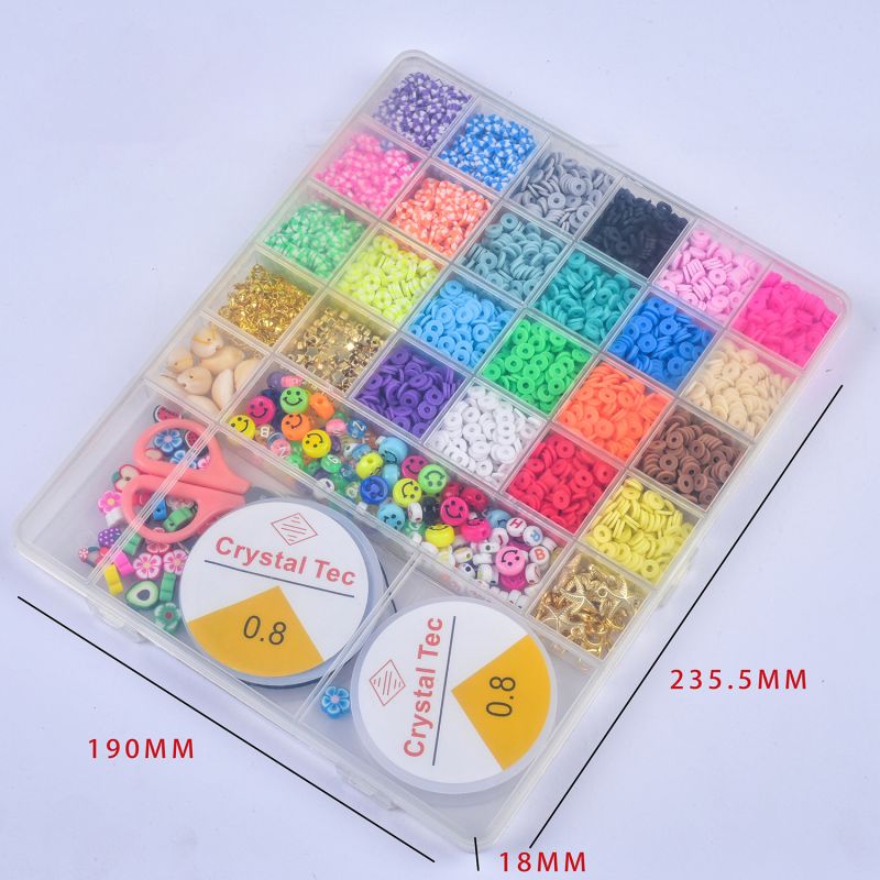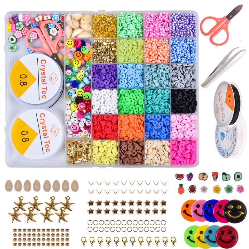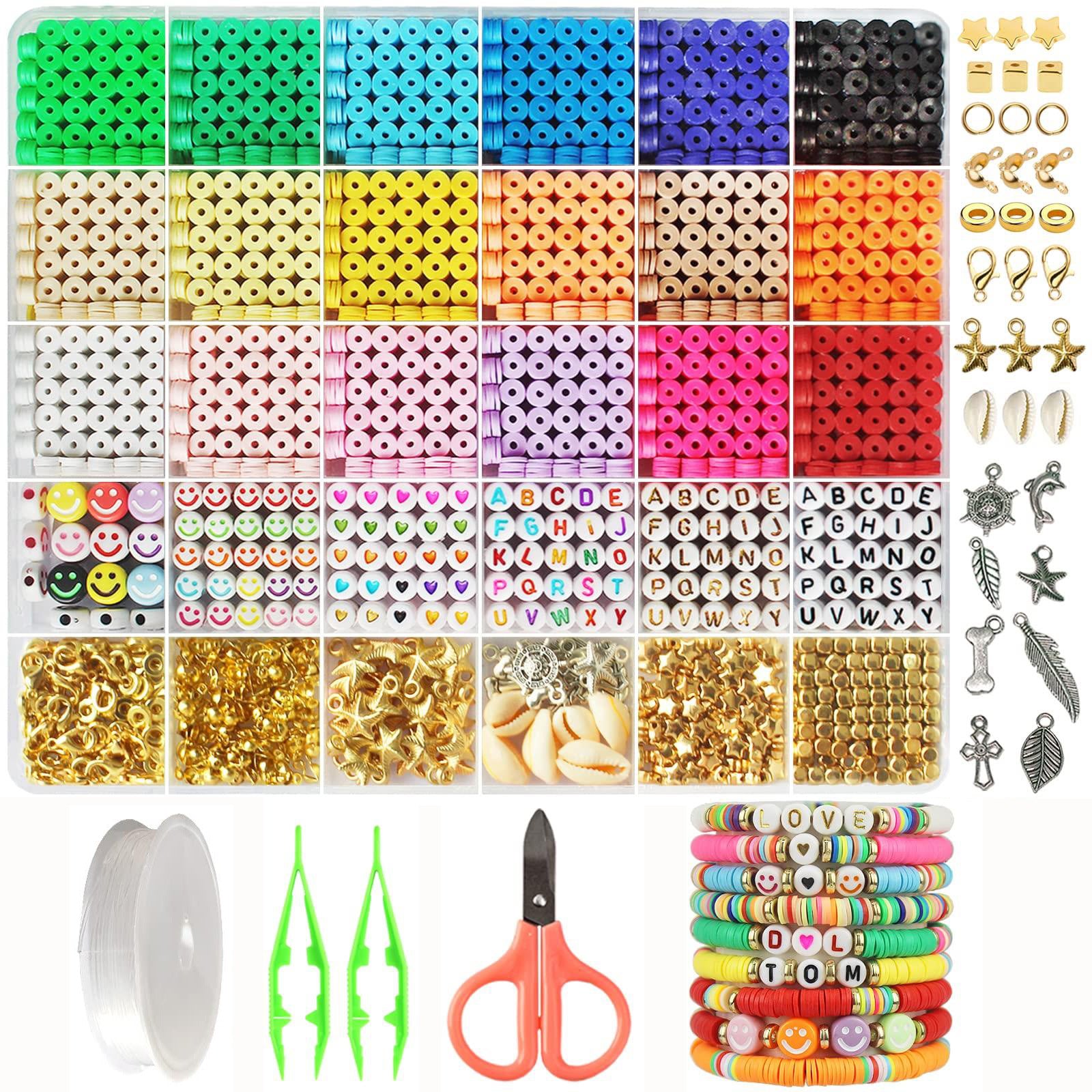 6MM Polymer Clay Beads Set 24 Rainbow Color Flat Chip Beads with Pendant Charms Kit and Elastic Strings for Jewelry Making Kit Bracelets Necklace For Boho Bracelet Necklce Making Letter Beads Accessories Kit DIY