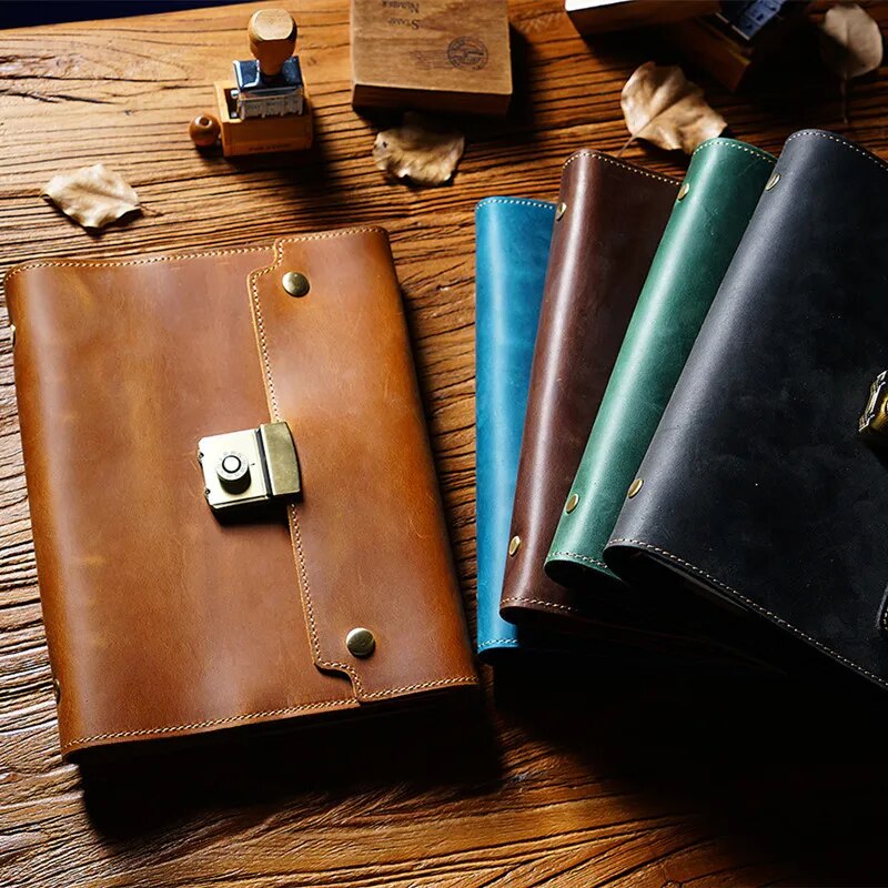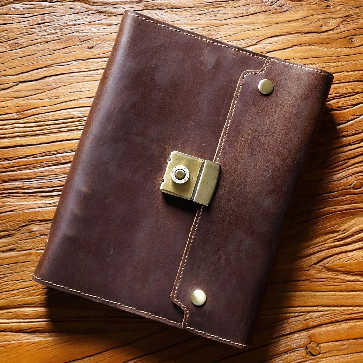 A5 Cowhide Simple Notebook Retro Password With Lock Diary Book Planner Creative Genuine Leather Notepad Student Notebook Office