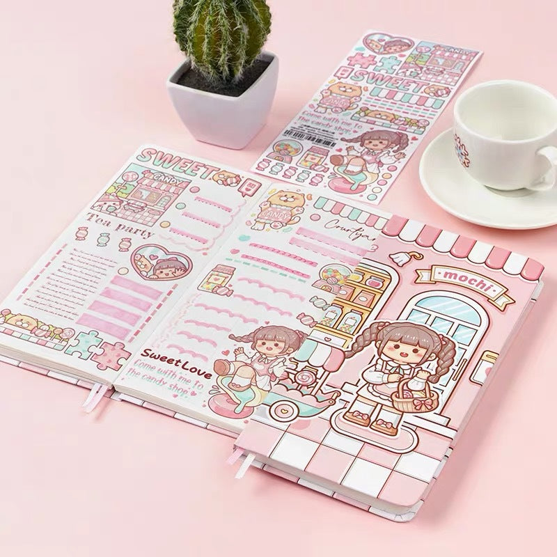 Cute Little Mochi Kawaii Cartoon Series Weekly Planners Notebook Agenda Portable Pocket 88 Sheets Diary Notepad Office School Stationery Supplies