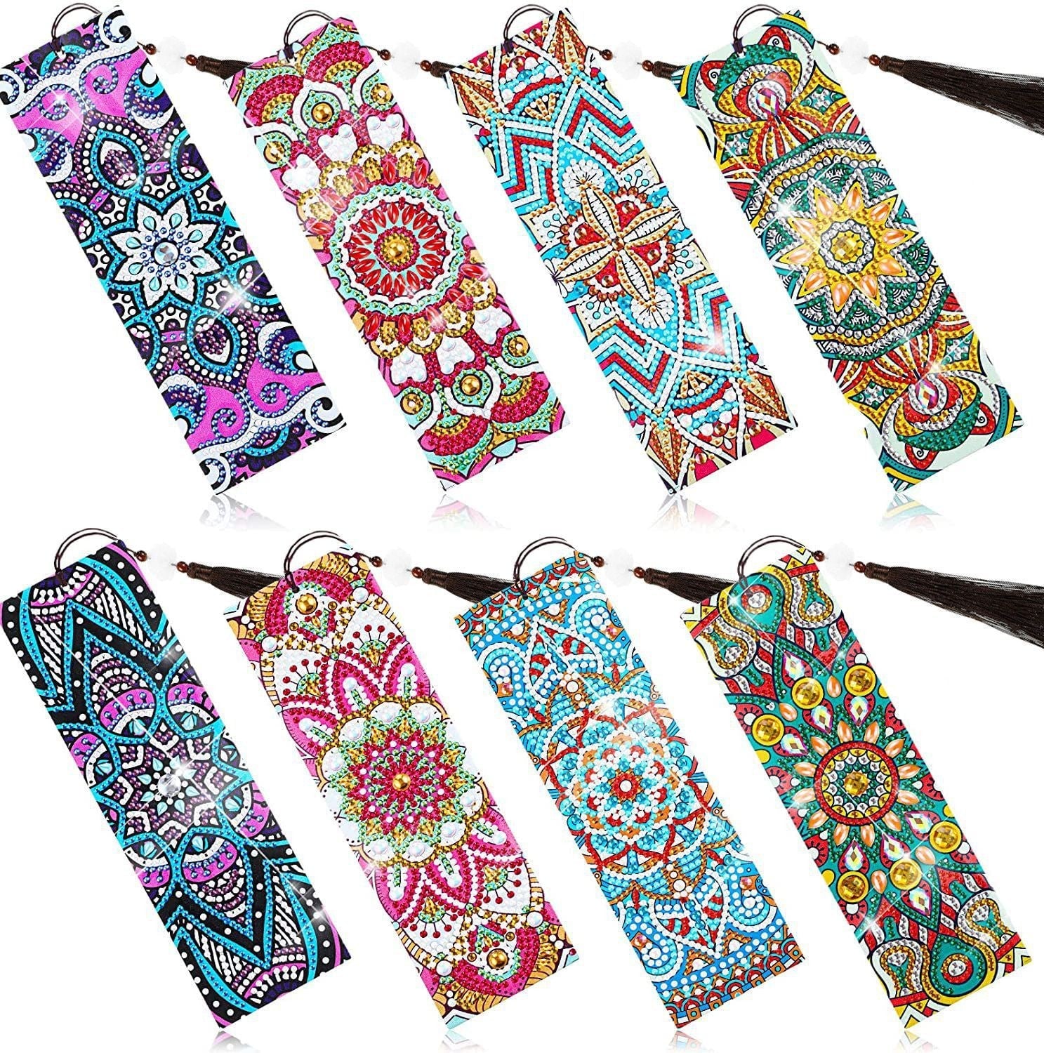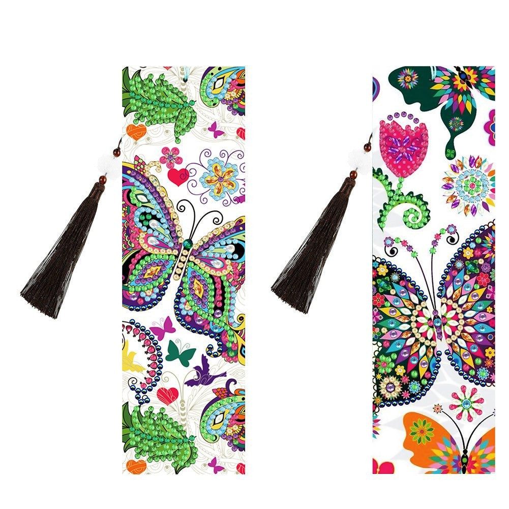 DIY Diamond Painting Bookmarks 2Pcs Diamond Embroidery Mosaic Cross Stitch Kit Butterfly Peacock Leather Tassel Book Marks Gift