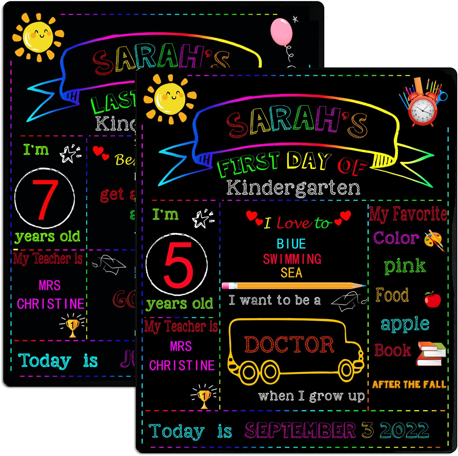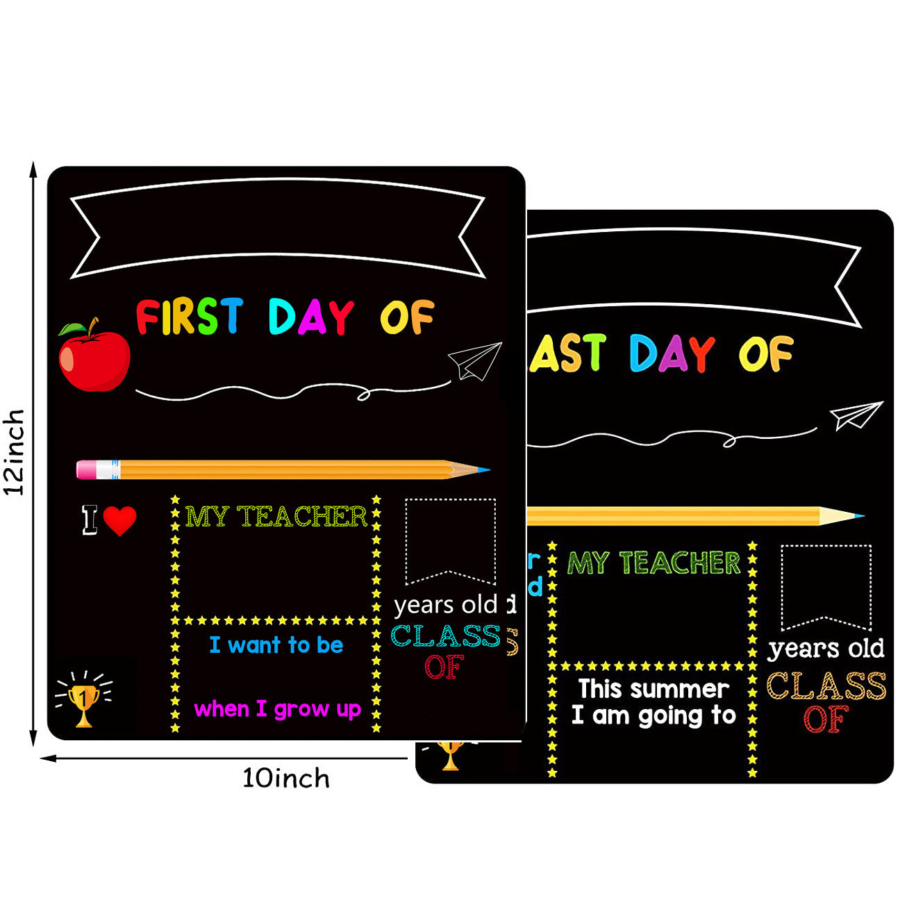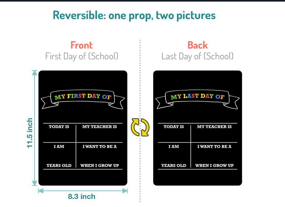 First Day of School Sign, First and Last Day of School Board, Double Sided Back to School Chalkboard, Reusable Wooden Preschool/Kindergarten Photo Prop for Kids/Boys/Girls