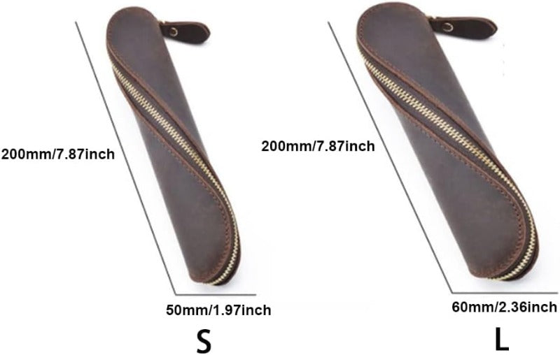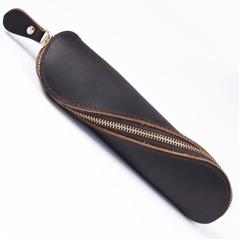 Genuine Leather Zipper Pen Pencil Bag Vintage Retro Style Creative School Students Stationary Accessories Supply Pen Case Pouch