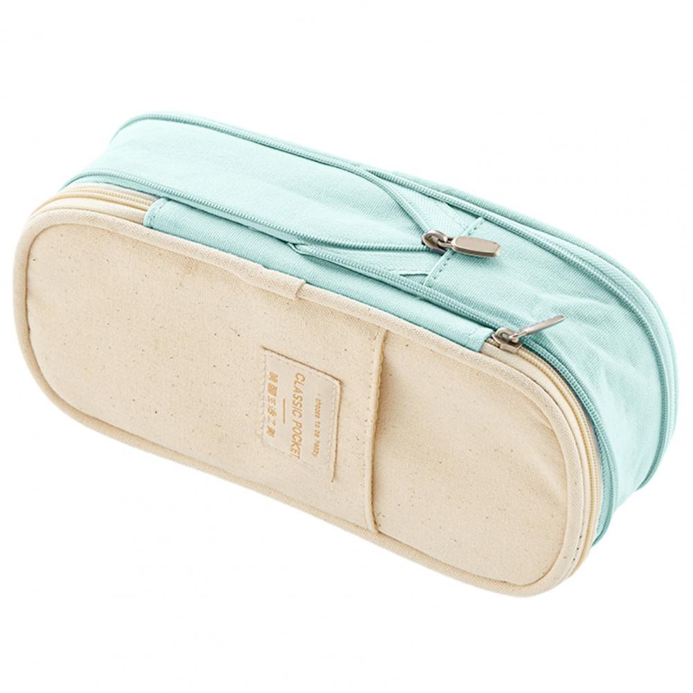 Minimalist Style Pencil Bag Large Capacity Canvas Classic Pocket Pen Pencil Case for School Stationery Storage Bag Office Supply